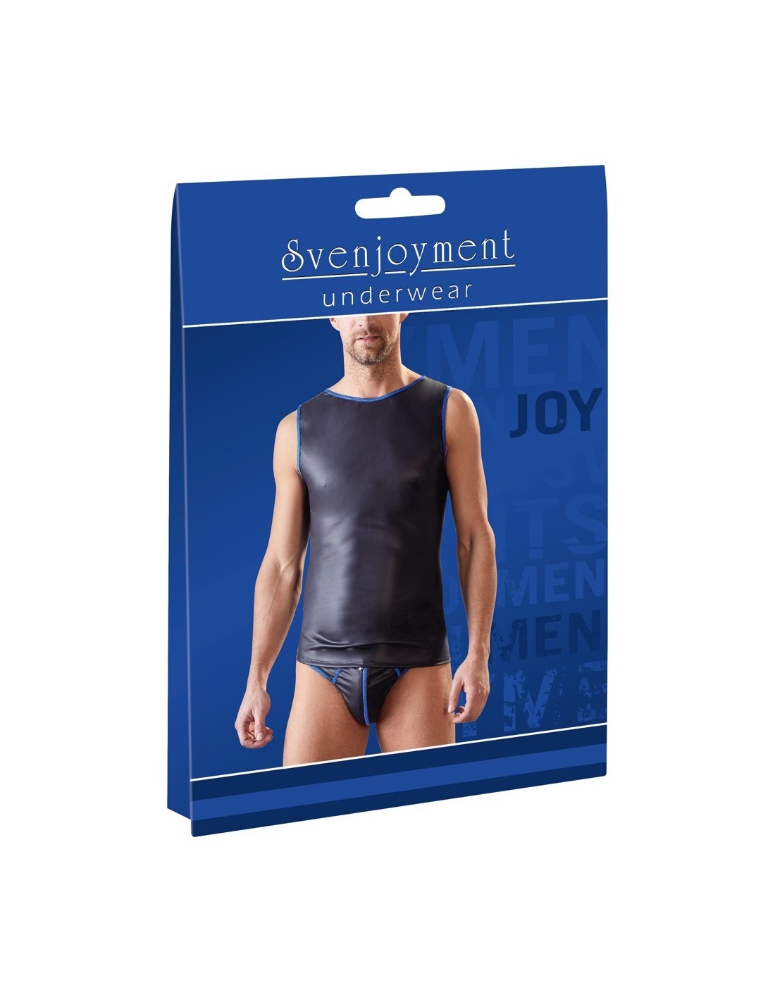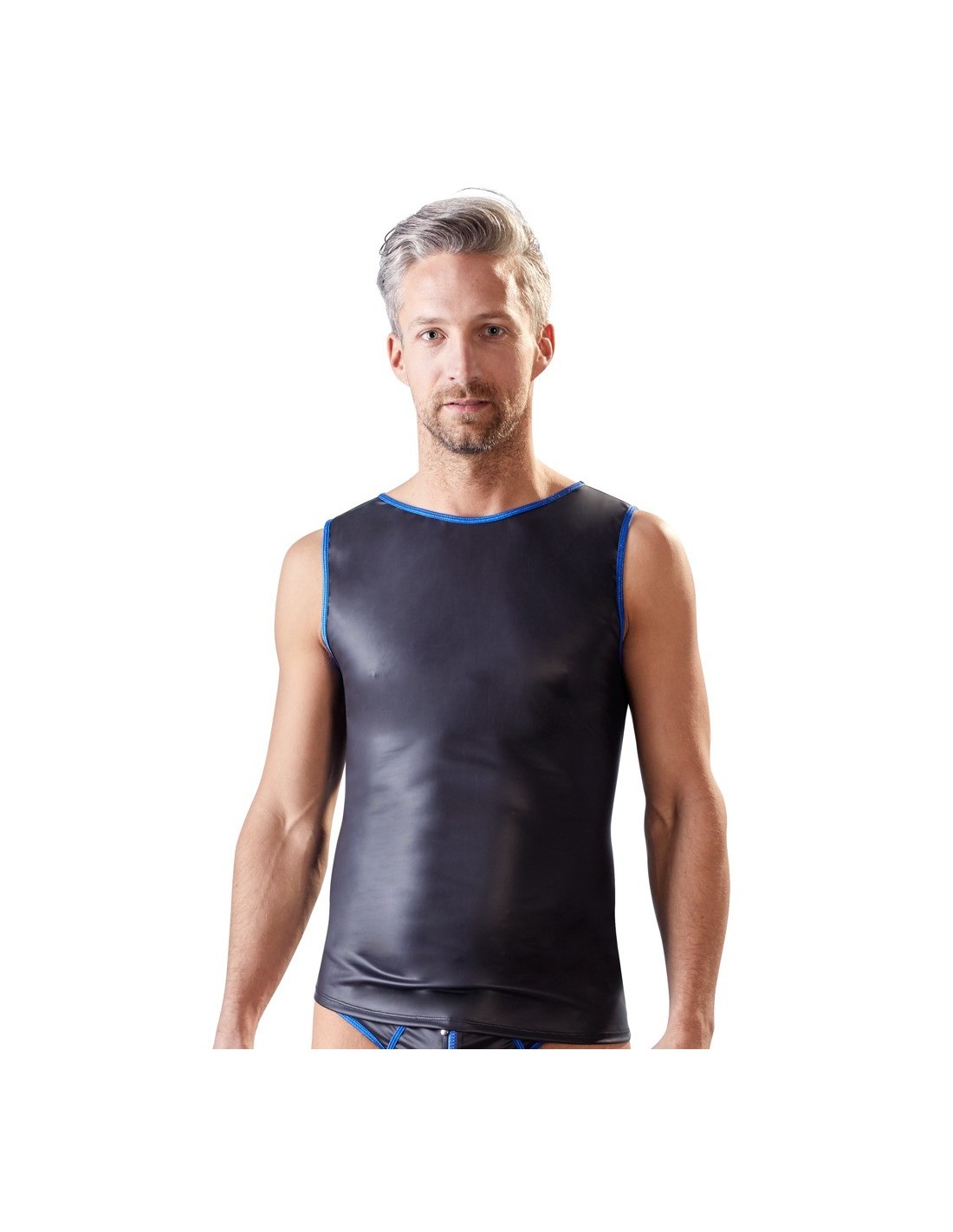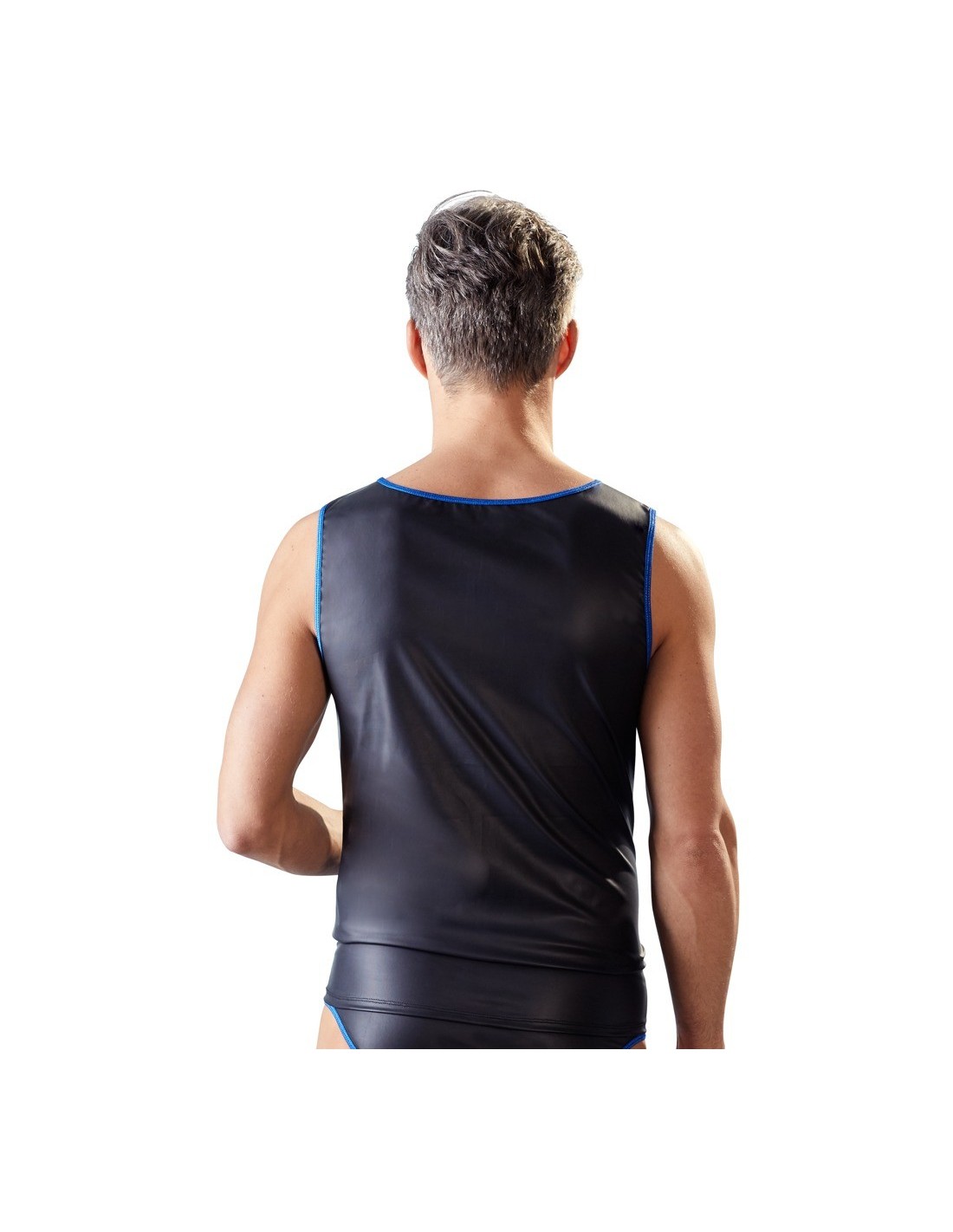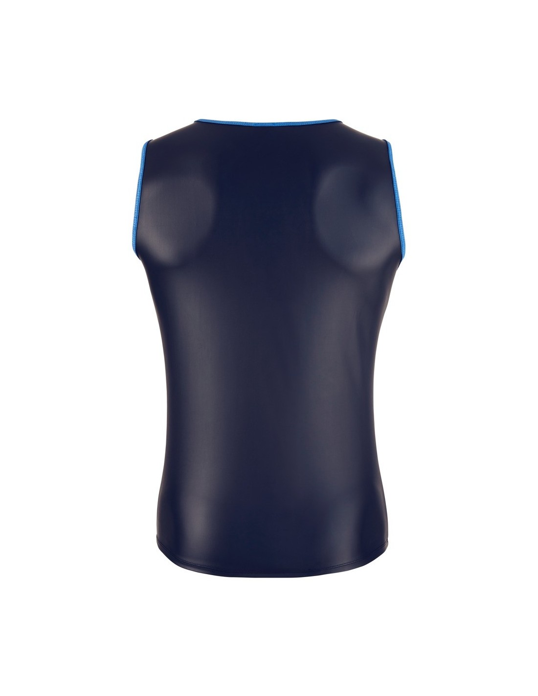 SvenjoymentŚwężka koszula o lekko rozciągliwym czarnym matowym wyglądzie ze szwami w kontrastowym niebieskim kolorze. Bez rękawów. 60% poliuretan, 36% poliester, 4% spandex.