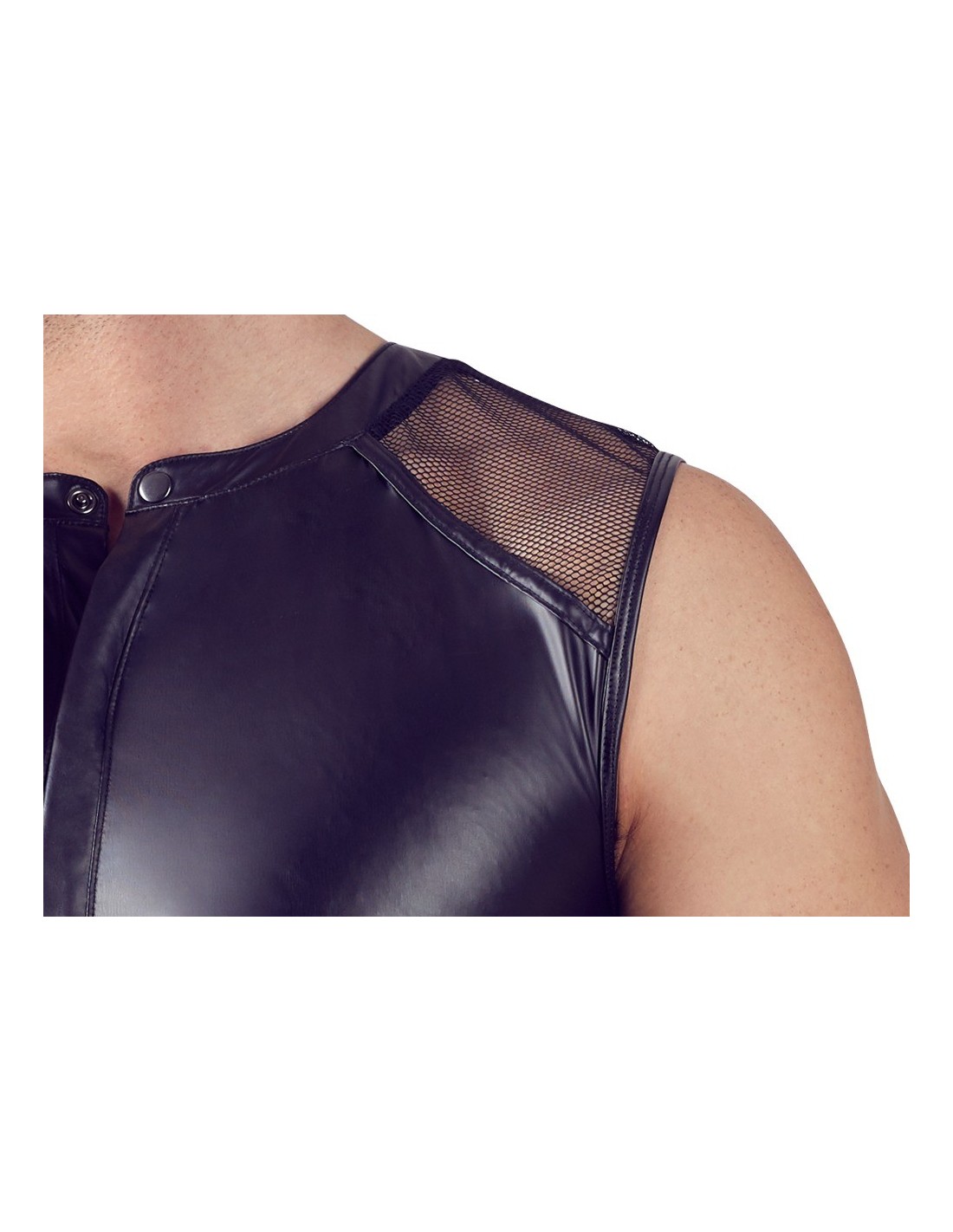 Rząd zatrzasków ukryty na przodzie topu dodaje mu niepowtarzalnego charakteru. To subtelne, ale zarazem odważne rozwiązanie, które przyciąga uwagę i wyróżnia Cię spośród tłumu. Dodatkowo, wstawki siatkowe na ramionach dodają wykończenia i nadają topowi piękny matowy wygląd.