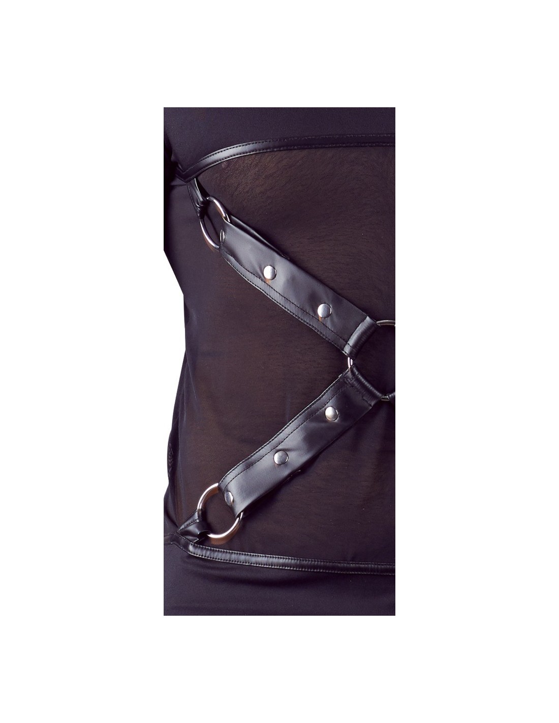 Ta koszulka o matowym wykończeniu posiada stylową wstawkę powernet z przodu, która pozwala na subtelne odsłonięcie męskich mięśni. Jednak to nie wszystko - największą atrakcją jest zdejmowana uprząż piersiowa z pięknymi i ekskluzywnymi detalami. Ta uwodzicielska ozdoba nie tylko przyciąga wzrok, ale także wzbudza pożądanie partnera.
