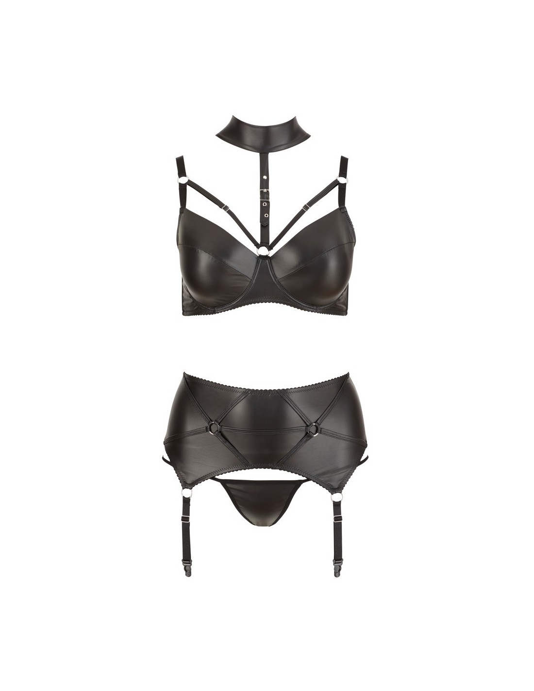 W zestawie znajduje się również choker, który dodaje całości jeszcze więcej seksapilu. Dwa przyciski umożliwiają regulację obwodu, zapewniając idealne dopasowanie. Choker jest przymocowany do regulowanego paska w obszarze dekoltu, tworząc niezwykle uwodzicielską kompozycję.