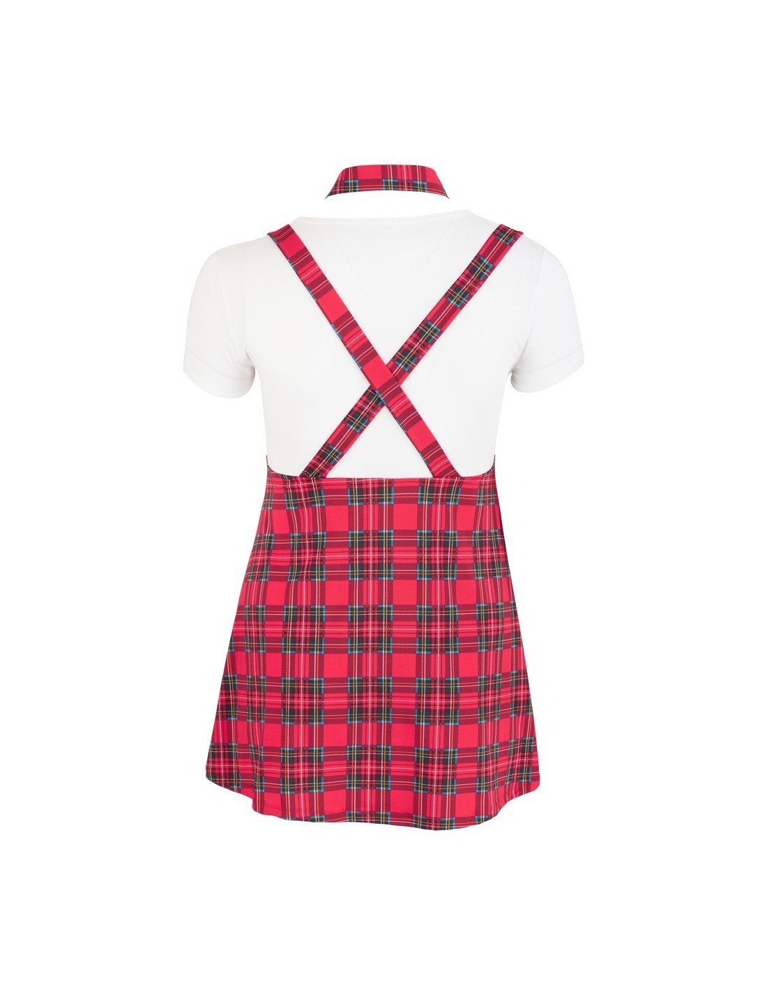 Nasze przebranie składa się z mini sukienki i krawata, które tworzą niezwykle uwodzicielski zestaw. Mini sukienka ma oryginalny design, który sprawia, że wygląda jak dwie części garderoby. Dodatkowo, posiada paski, które podkreślają Twoje kobiece kształty. Biało-czerwona szachownica nadaje jej niepowtarzalnego charakteru, a materiał z 92% poliestru i 8% spandexu zapewnia idealne dopasowanie do Twojego ciała.