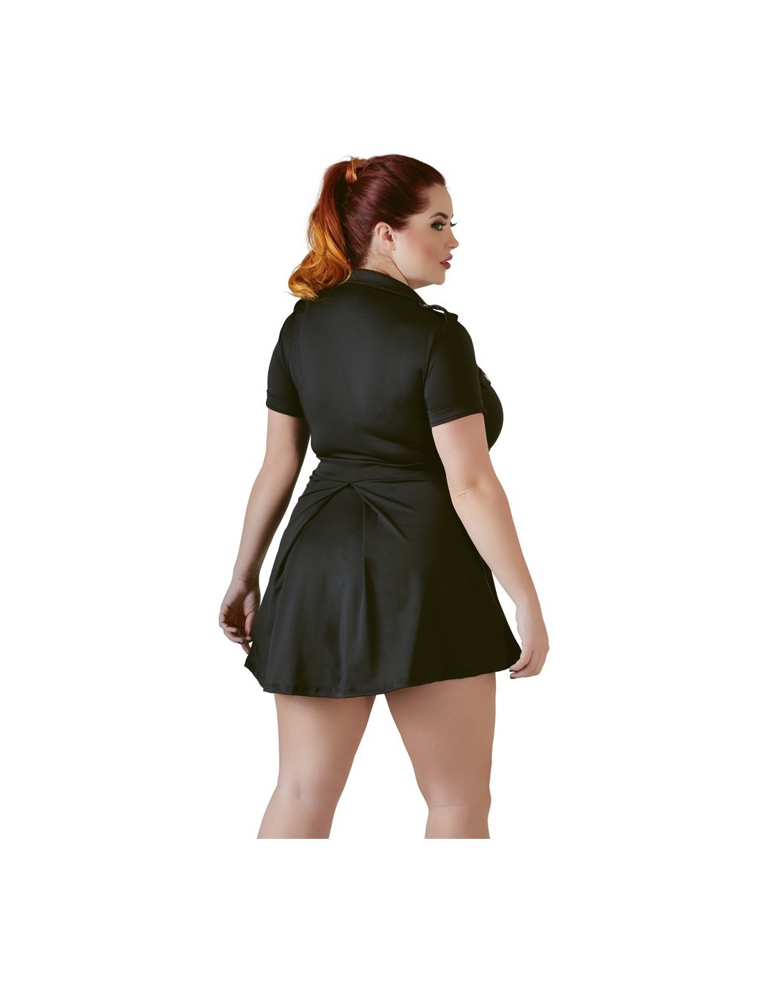 Ta ostra policjantka posiada kołnierzyk, kieszenie i epolety, które dodają jej jeszcze większego uroku. Ale to nie wszystko! Wyjątkowo niskie cięcie w obszarze dekoltu podkreśla Twoje kobiece kształty i dodaje niepowtarzalnego seksapilu. Niezależnie od tego, czy chcesz zaskoczyć swojego partnera w sypialni, czy po prostu bawić się na imprezie, ten strój sprawi, że poczujesz się pewnie i uwodzicielsko.
