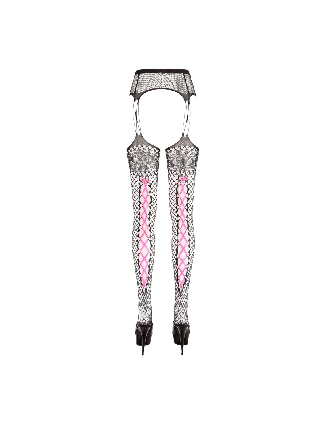 Te rajstopy są naprawdę przyciągające wzrok! Wykonane z delikatnej siatki ogrodzeniowej, z ozdobnym różowym sznurowaniem z tyłu, nadadzą Twojemu wyglądowi ekscytujący i ekstrawagancki charakter. Jednak nie musisz się martwić o komfort - mimo swojego zmysłowego wyglądu, są tak samo wygodne jak zwykłe rajstopy.