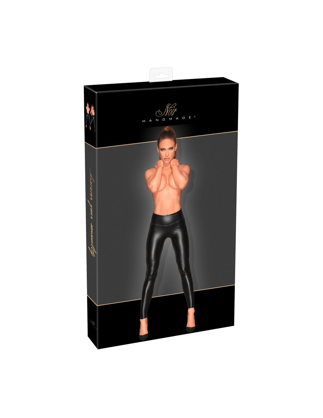 Pochlebne dlafigurek legginsy z długimi nogawkami i szerokim pasem. Wykonana z elastycznego matowego wyglądu. Posiada również przyciągającą wzrok imitację skóry z powłoką winylową z tyłu.