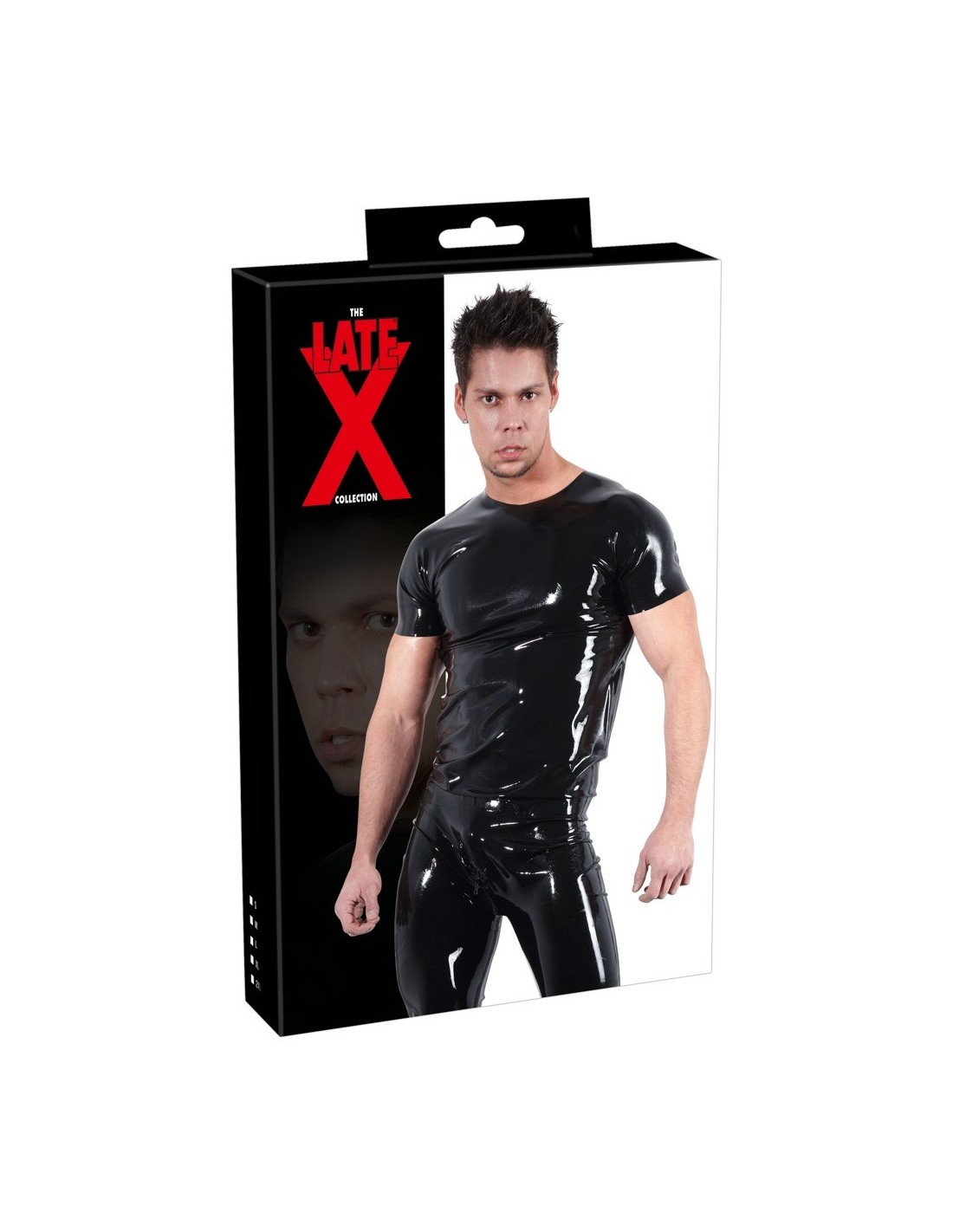 Przedstawiamy Ci naszą najnowszą propozycję dla miłośników lateksu - męską koszulkę Late X! Jej czarny kolor i błyszczący materiał sprawiają, że wygląda niezwykle elegancko i seksownie. Prosty krój, krótkie rękawy i okrągły dekolt dodają jej uniwersalności, dzięki czemu możesz ją nosić na wiele różnych sposobów.