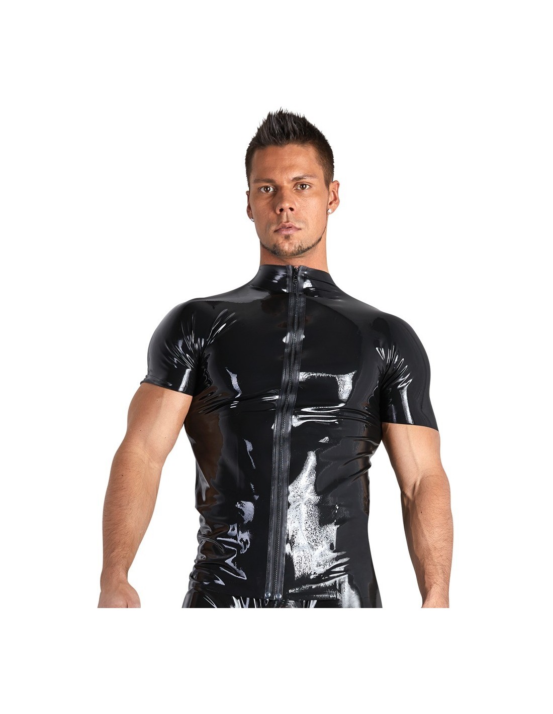 Wykonana z naturalnej gumy lateksowej, nasza koszula Men's Latex Shirt M gwarantuje nie tylko niepowtarzalny wygląd, ale również wyjątkową jakość i wygodę noszenia. Krótki rękaw i mały stójkę dodają koszuli charakteru, podkreślając męską sylwetkę. Dodatkowo, zamek błyskawiczny na całej długości umożliwia szybkie odsłonięcie klatki piersiowej, co zapewnia niezapomniane wrażenia i podkręca atmosferę.
