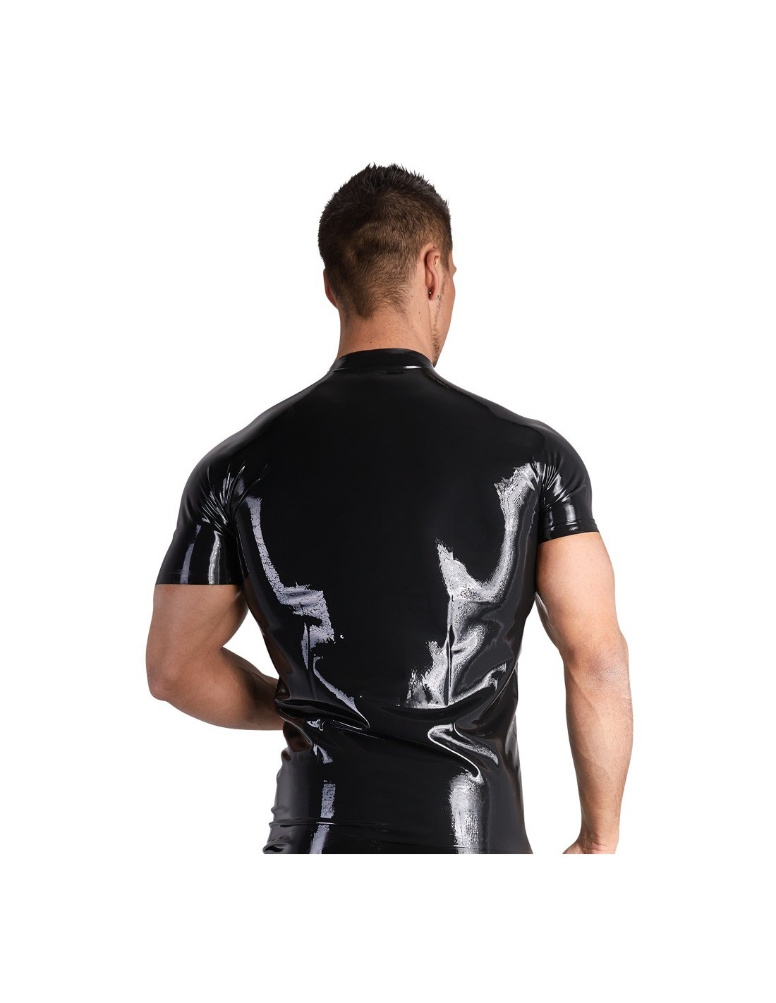 Nasza gorąca koszula Men's Latex Shirt M jest dostępna w kolorze czarnym, który dodaje jej jeszcze większej tajemniczości i seksapilu. Pamiętaj jednak, że lateks, z którego została wykonana, może powodować alergie, dlatego zalecamy przeprowadzenie testu uczuleniowego przed pierwszym użyciem.