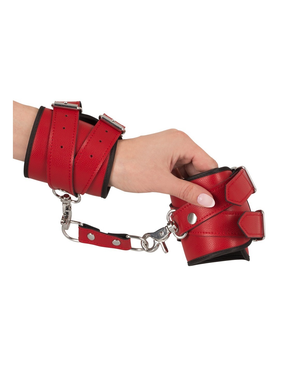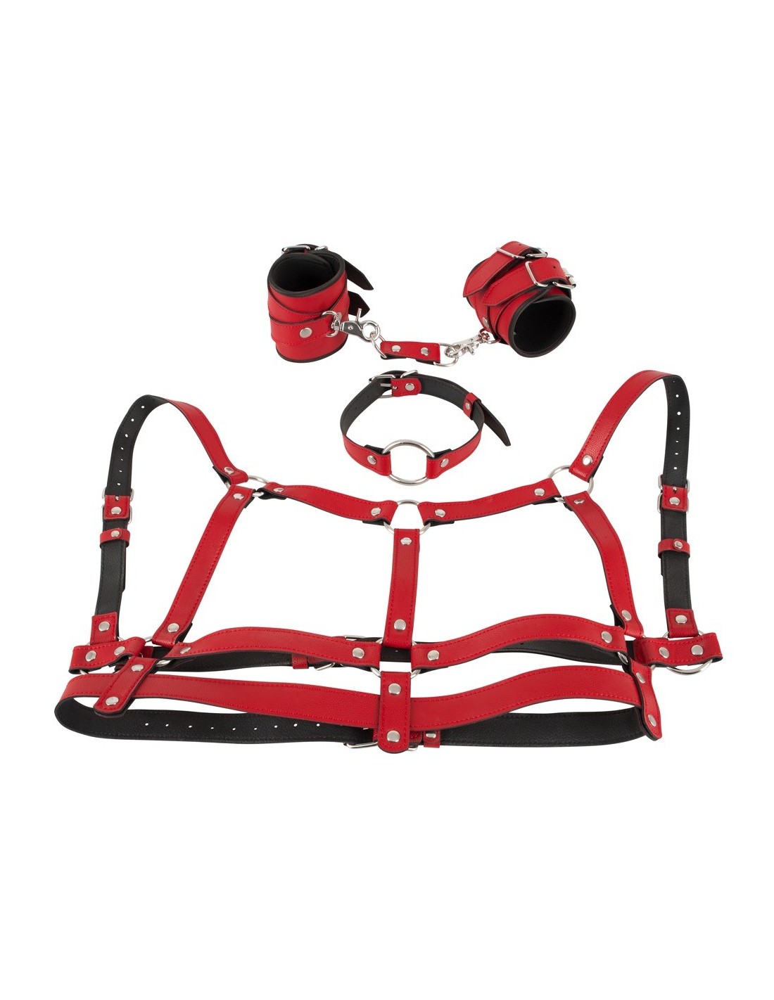 Uprząż BDSM z kajdankami i obrożą Bad Kitty Harness Set Red