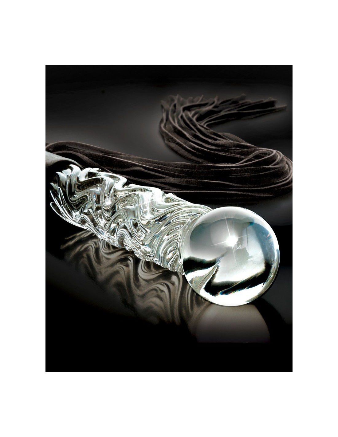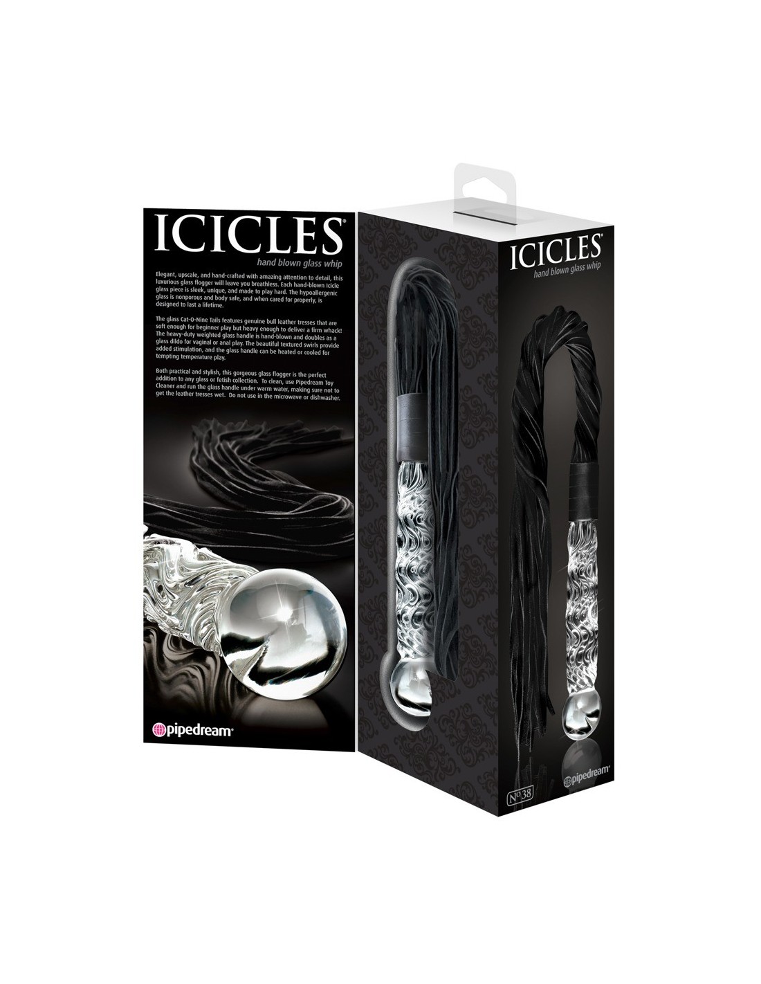 Odkryj nowy wymiar przyjemności z połączenia dildo i floggera! Icicles No. 38 Clear/Blue to wyjątkowe ręcznie wykonane szklane dildo z miękkimi skórzanymi włosami na jednym końcu. To niezwykłe połączenie zapewnia nie tylko intensywne doznania, ale także możliwość eksperymentowania z różnymi rodzajami stymulacji.
