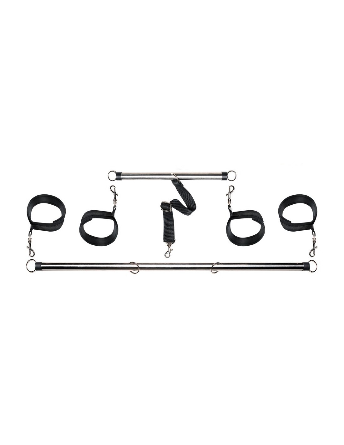Dzięki prętom rozrzutnika ręce i nogi Twojego partnera zawsze będą rozłożone i związane. To idealne narzędzie do gorących gier przyjemności, które zapewnią Wam obojgu niezapomniane doznania. Mankiety na dłonie i stopy można łatwo regulować za pomocą zapięć na rzepy, co pozwoli Ci dopasować je do indywidualnych potrzeb.