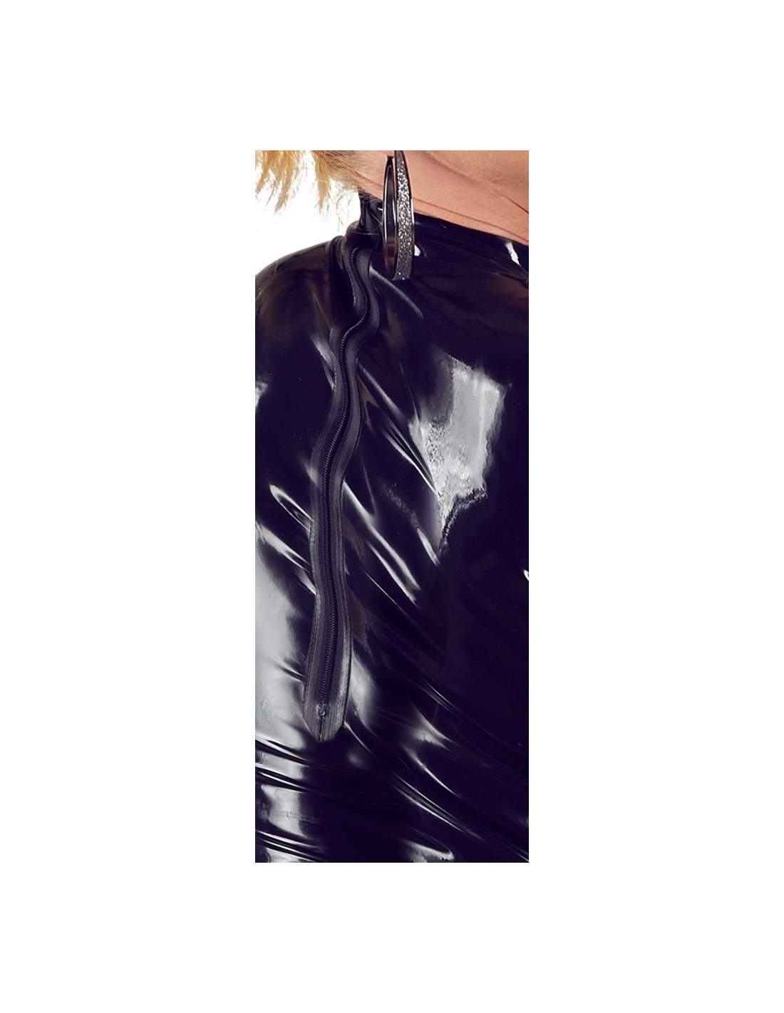 Nasza sukienka lateksowa ma wiele praktycznych funkcji, które ułatwiają jej noszenie. Z tyłu znajduje się zamek błyskawiczny, który umożliwia łatwe zakładanie i zdejmowanie sukienki. Dodatkowo, sukienka jest wyposażona w stójkę, która dodaje jej elegancji i seksownego wyglądu.