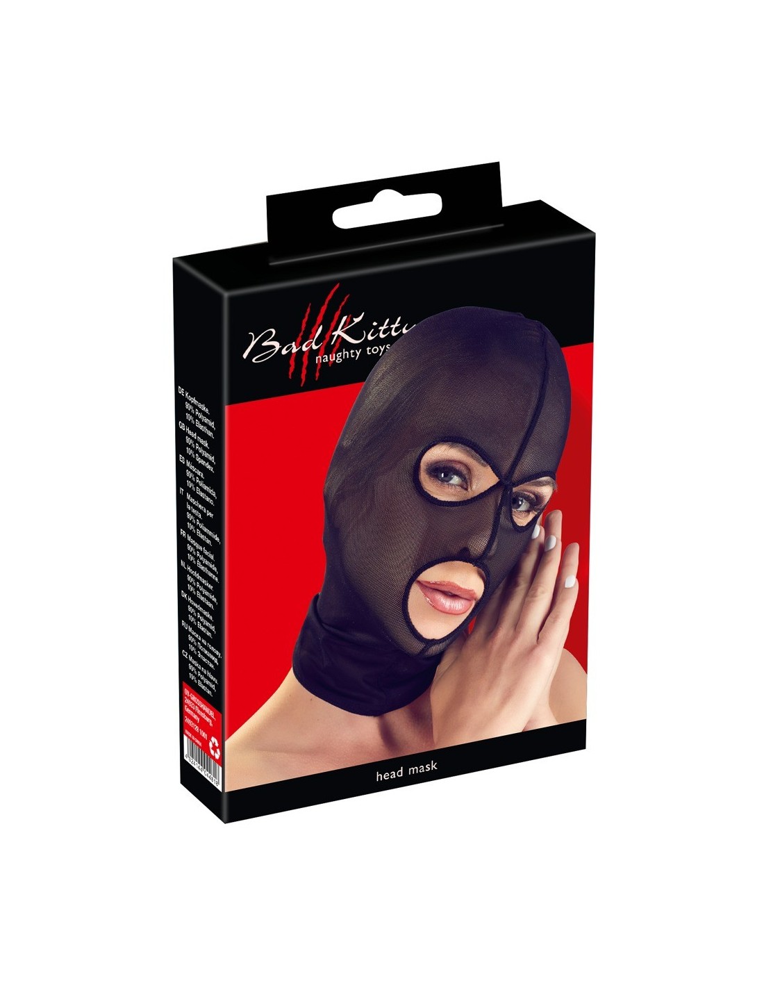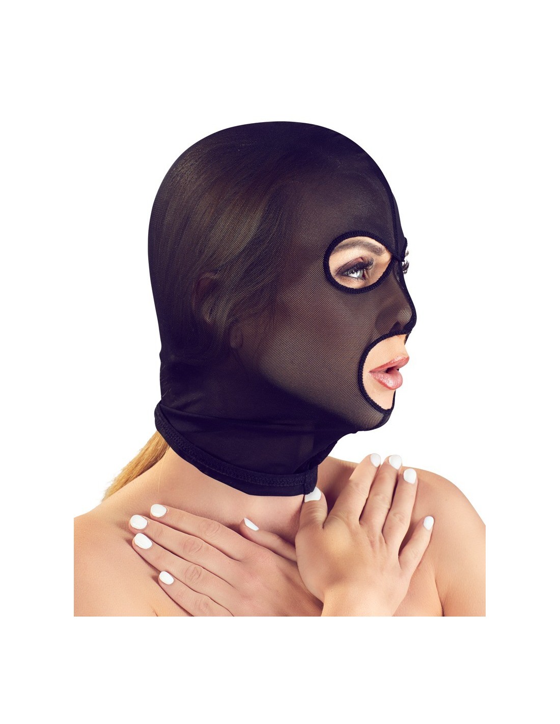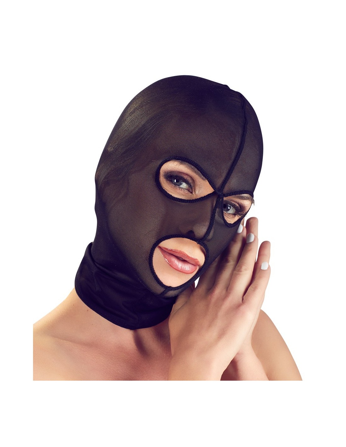 Bardzo rozciągliwa maska na głowę wykonana z drobno tkanej, półprzezroczystej sieci powernet. Maska jest wygodna i pasuje jak druga skóra. Duże otwory na oczy i usta są ozdobione rurkami. Jeden rozmiar – pasuje do NIEGO i NIEJ.