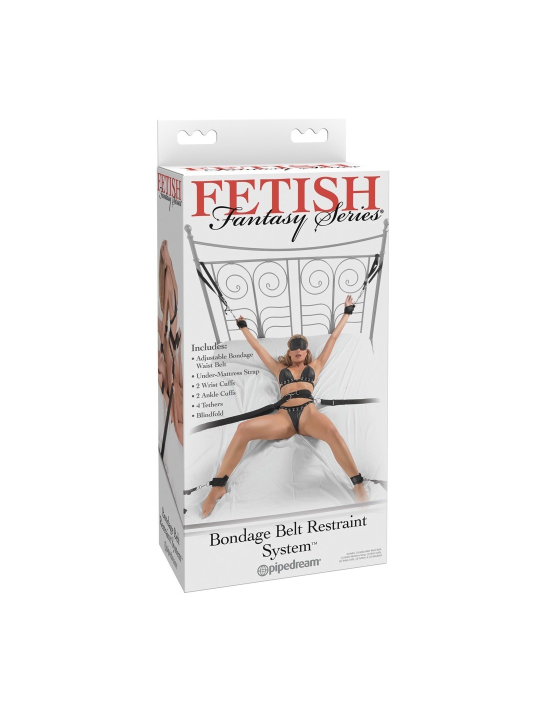 Ten zestaw bondage to wszystko, czego potrzebujesz, aby rozpocząć swoją podróż w świat BDSM. Zawiera on pasek na materac, pasek w talii, 2 kajdanki, 2 mankiety na kostki i 4 paski przytrzymujące. Pasek materaca jest łatwy w montażu - wystarczy umieścić go pod materacem, a następnie przymocować do niego pasek w talii. Dzięki temu Twoje łóżko stanie się profesjonalnym placem zabaw dla niewolników.