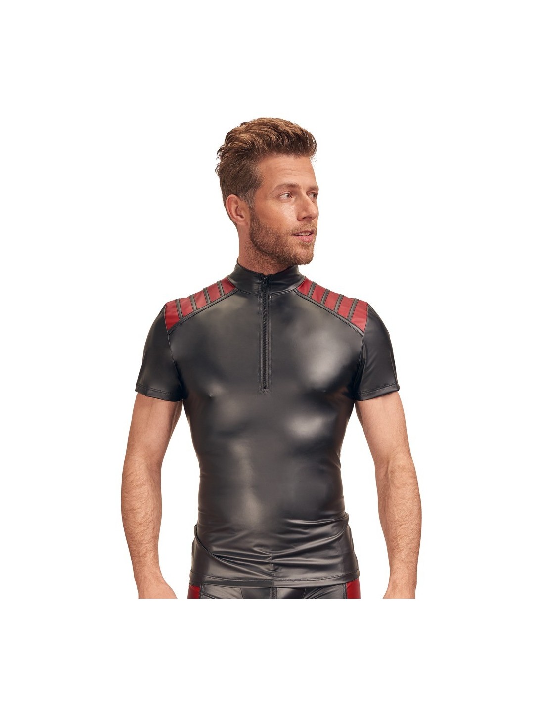 Ta czarna koszula posiada czerwone wstawki na ramionach, które dodają jej charakteru i oryginalności. Z przodu znajduje się mała stójka oraz zamek błyskawiczny, który dodaje koszuli nowoczesności i sprawia, że jest jeszcze bardziej atrakcyjna. Wykonana z materiału o składzie 90% poliester i 10% spandex, ta koszula jest cudownie rozciągliwa, co zapewnia perfekcyjne dopasowanie do Twojej sylwetki.