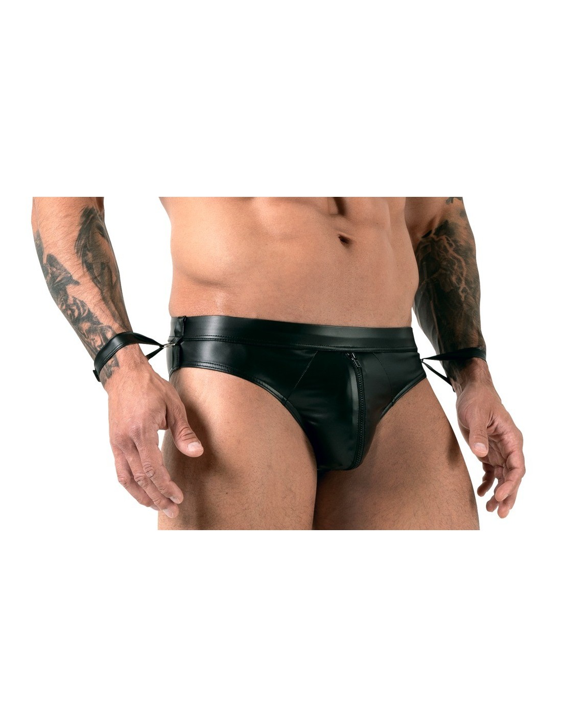 Nasze slipy z uprzężą Men's Jock Briefs S są nie tylko atrakcyjne wizualnie, ale także oferują niezrównaną kontrolę. Znajdujące się po obu stronach pierścienie na dołączone kajdanki dają Ci możliwość eksperymentowania i dostosowywania poziomu intensywności według Twoich preferencji. Kajdanki wyposażone w zapięcia na rzepy są łatwe do regulacji, zapewniając Ci pełną swobodę ruchu i komfort noszenia.