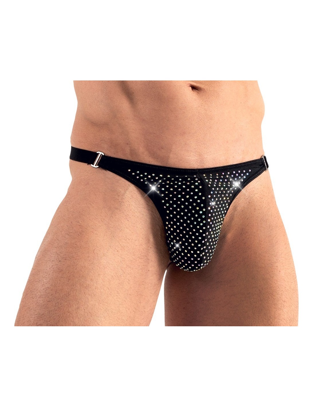 Czy czujesz, że Twój styl potrzebuje odrobiny blasku? Te błyszczące stringi męskie Men's String S są idealnym rozwiązaniem! Ich ekskluzywny design z przodu, ozdobiony kolorowymi cyrkoniami, przyciąga wzrok i dodaje Ci pewności siebie.