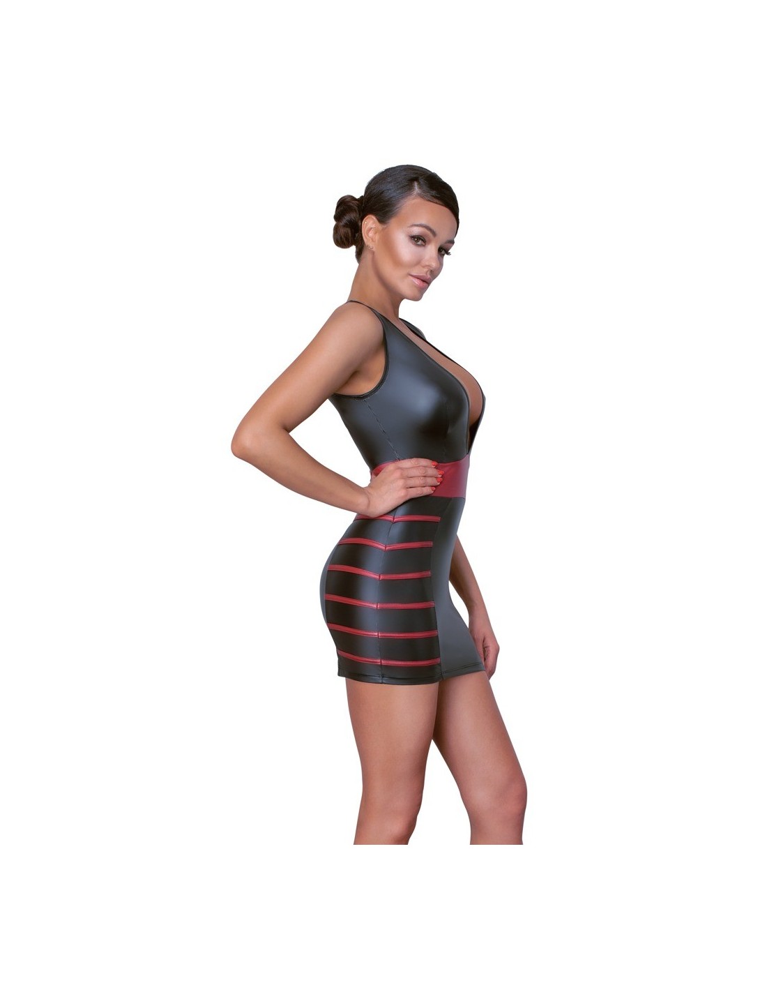 Wyobraź sobie, jak wyglądasz w tej krótkiej, obcisłej sukience w kolorze czarnym z czerwonymi akcentami. To jest to, czego potrzebujesz, aby podkreślić swoje seksowne krągłości i przyciągnąć uwagę wszystkich wokół ciebie.
