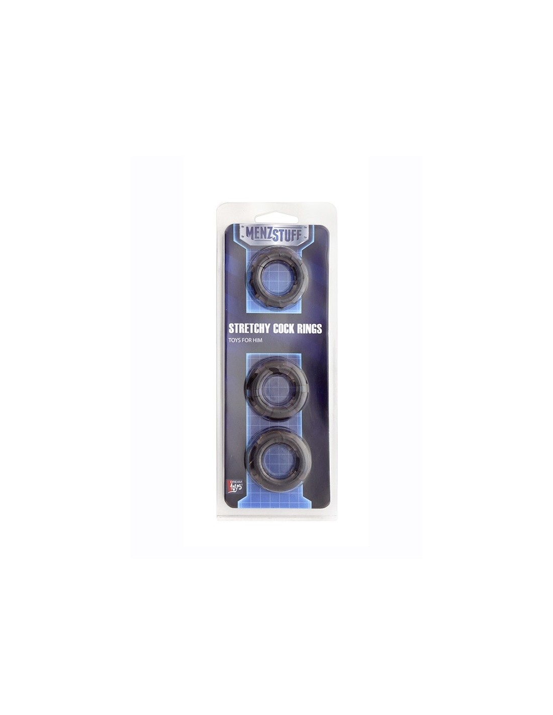 Dream ToysIntensyfikuj swoje doznania z Zestawem pierścieni na penisa ENZSTUFF STRETCHY COCK RINGS SMOKE
