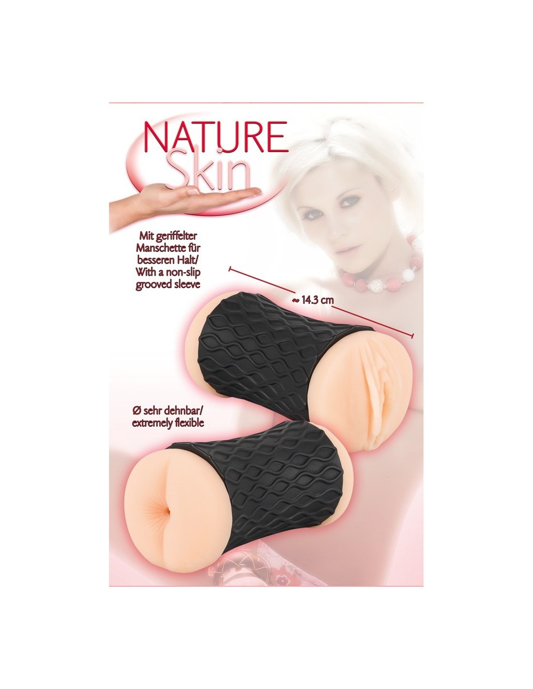 Ten masturbator został wykonany z materiału Nature Skin, który jest nie tylko miękki i przyjemny w dotyku, ale również doskonale imituje prawdziwą skórę. Dzięki temu możesz cieszyć się autentycznymi doznaniami, które przeniosą Cię na zupełnie nowy poziom rozkoszy. Posiada również dwa otwory - pochwowy i odbytowy, aby zapewnić Ci pełną swobodę wyboru.