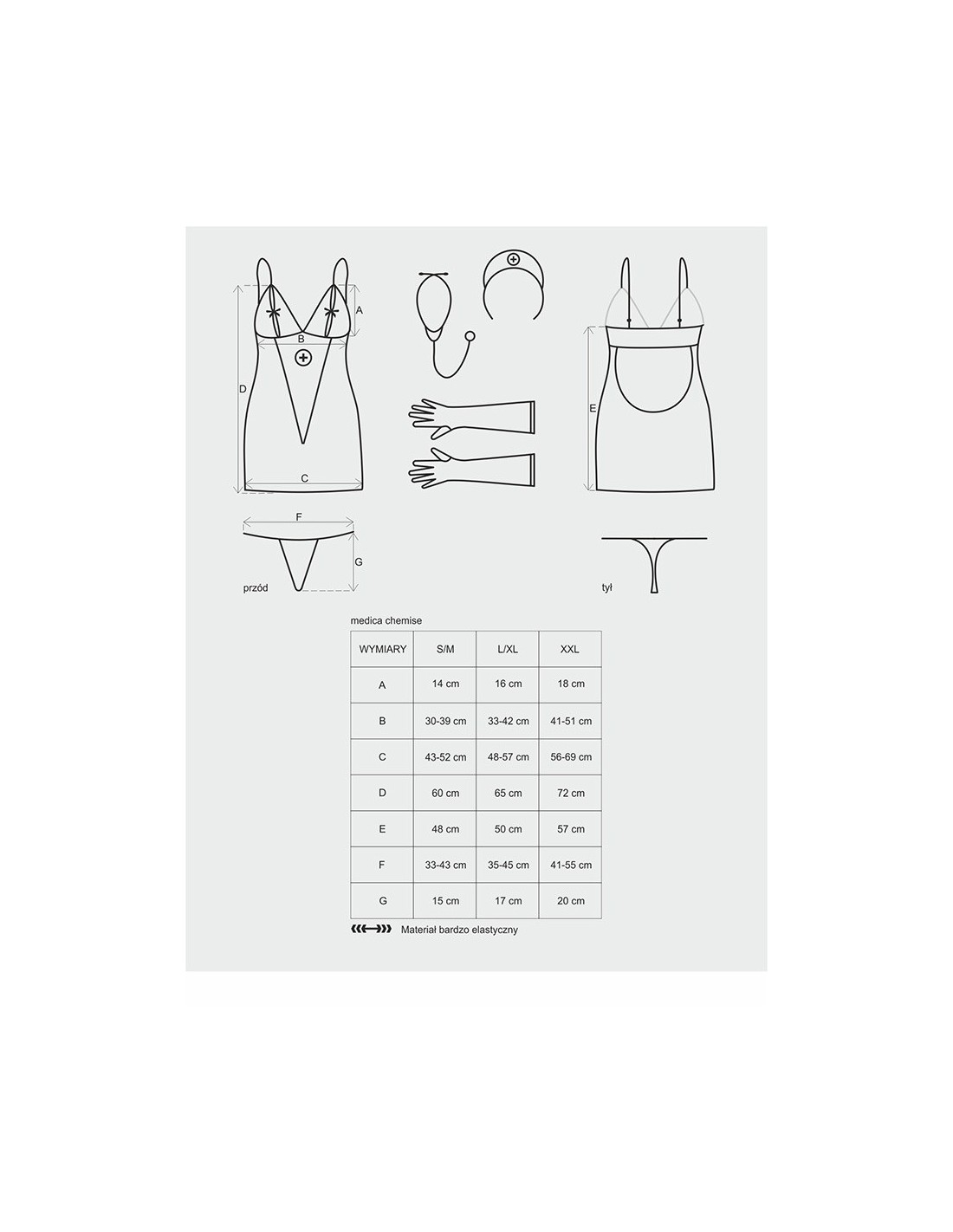 - w komplecie –stetoskop, pielęgniarski czepek na opasce, rękawiczki , stringi