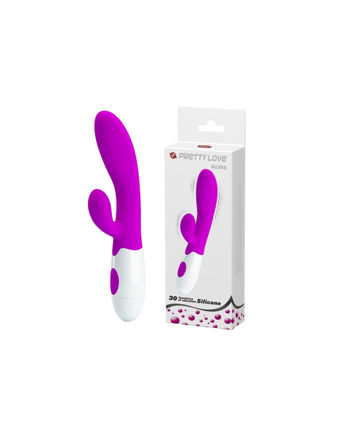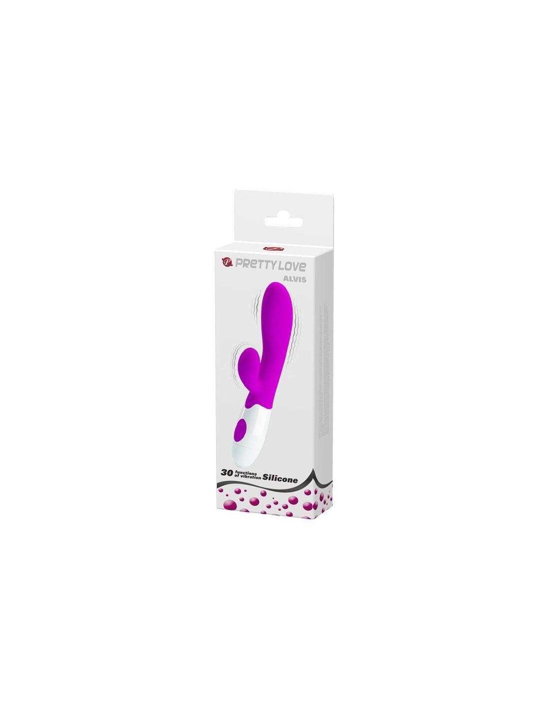 Silikonowy wibrator Alvis 30 funkcji to średnich rozmiarów, ciekawy wibrator z masażerem łechtaczki.