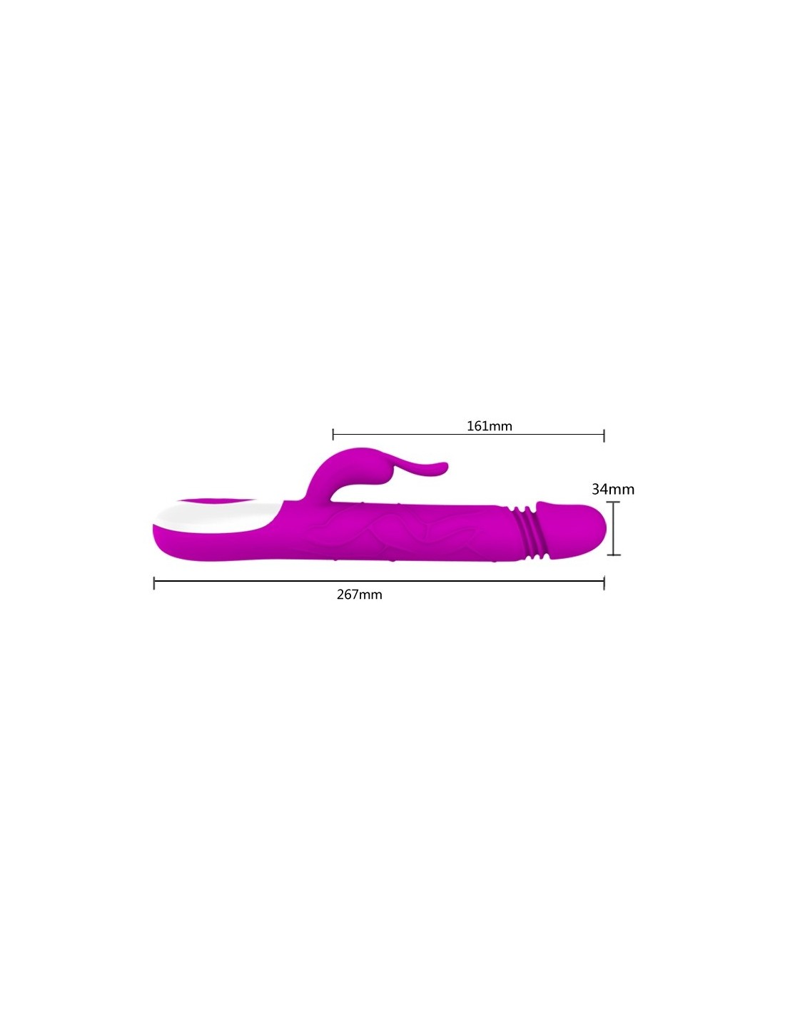 Wibrator ADRIAN został zaprojektowany z myślą o Twojej wygodzie i satysfakcji. Jego całkowita długość wynosi 25 cm, a długość użytkowa to 16 cm, co sprawia, że jest idealny zarówno dla początkujących, jak i dla bardziej doświadczonych użytkowników. Maksymalna średnica wynosi 3,5 cm, a stymulator łechtaczki ma długość 7 cm i średnicę 2,2 cm.
