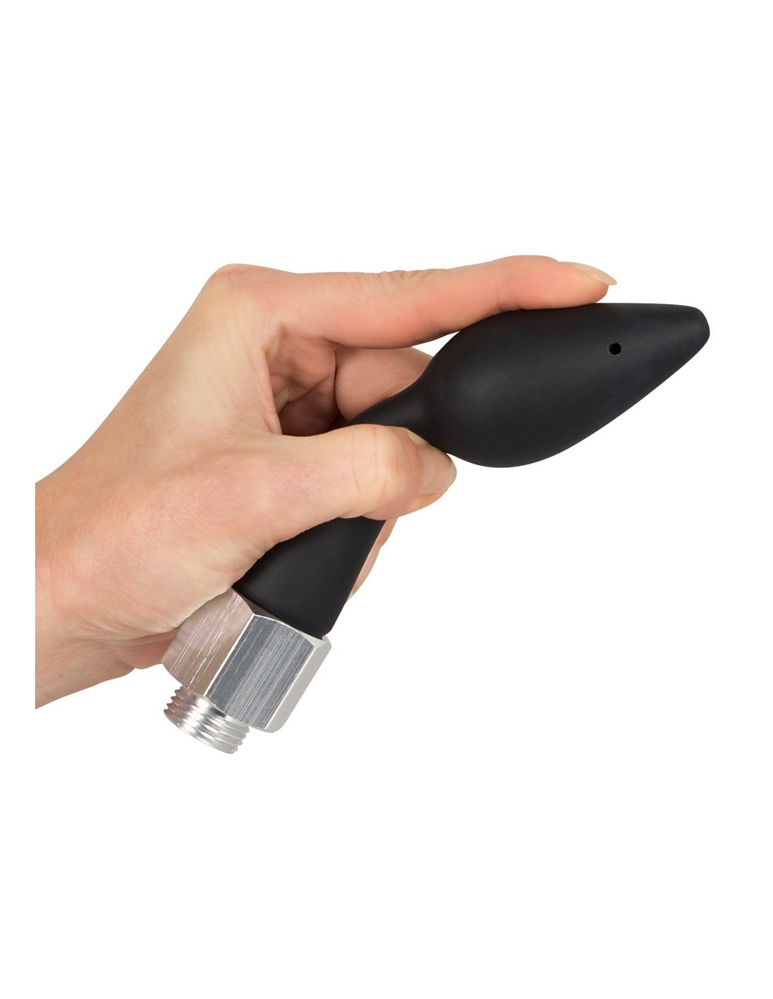Wystarczy przykręcić wtyczkę (z gwintem) do węża prysznicowego i cieszyć się. Stożkowa wtyczka wsuwa się bardzo łatwo dzięki czarnej, aksamitnie miękkiej, silikonowej powierzchni. Woda wystrzeliwuje z 5 otworów (jednego na końcu wtyczki) i będziesz cieszyć się czystą przyjemnością podczas czyszczenia intymnego obszaru!