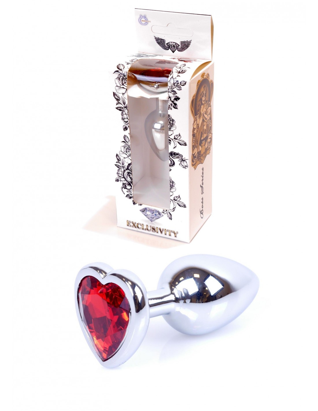 Mały Stalowy Korek Analny z Czerwonym Serduszkiem Exclusivity - Srebrny lub Złoty