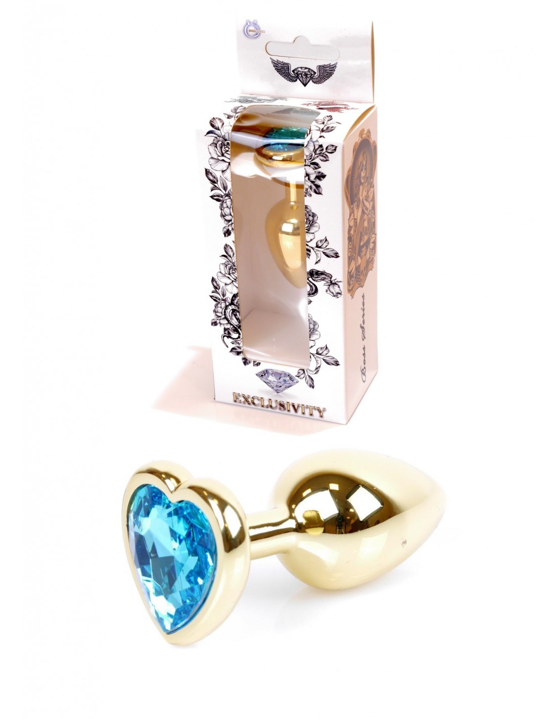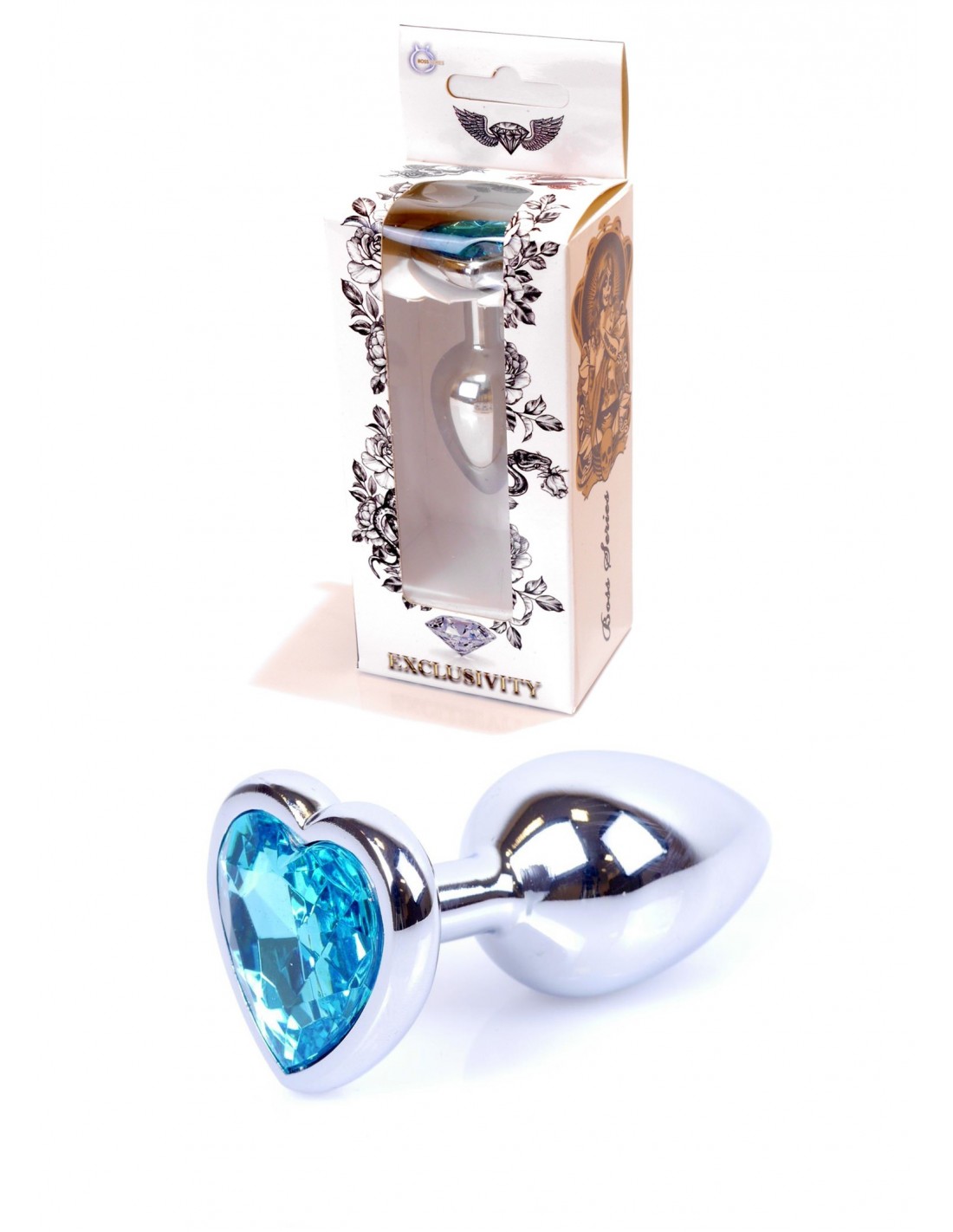 Mały Stalowy Korek Analny z Turkusowym Serduszkiem Exclusivity - Srebrny lub Złoty