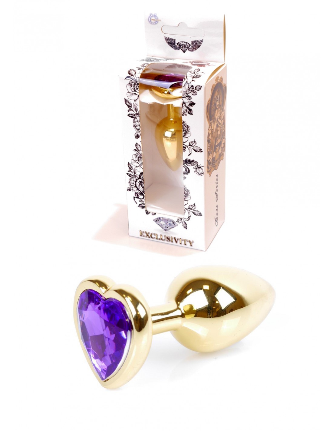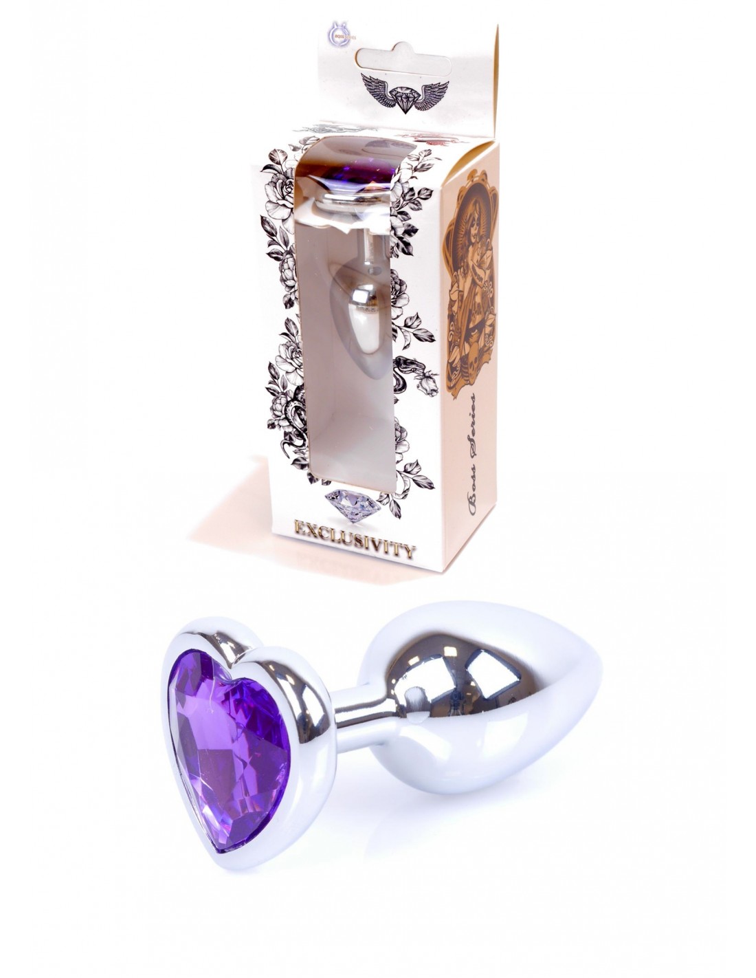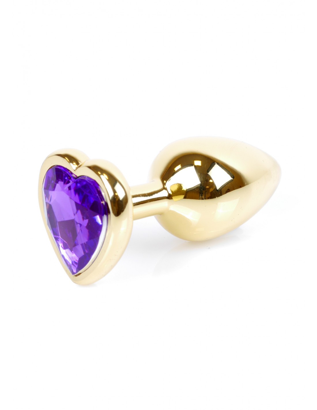 Mały Stalowy Korek Analny z Fioletowym Serduszkiem Exclusivity - Srebrny lub Złoty