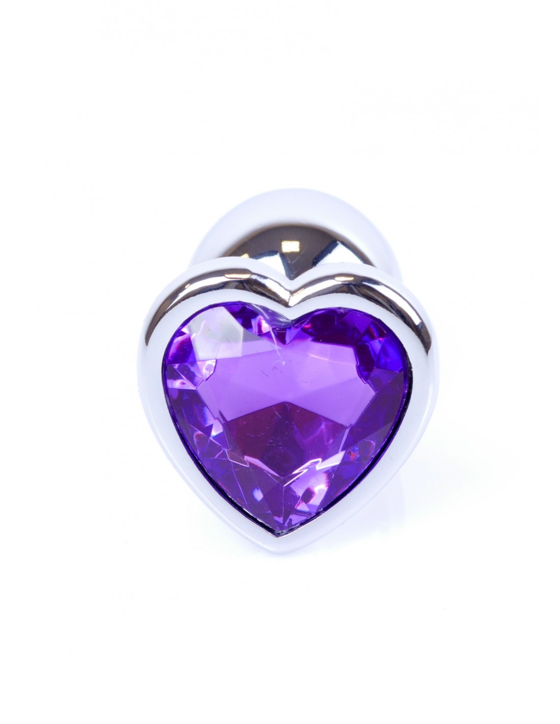 Mały Stalowy Korek Analny z Fioletowym Serduszkiem Exclusivity - Srebrny lub Złoty