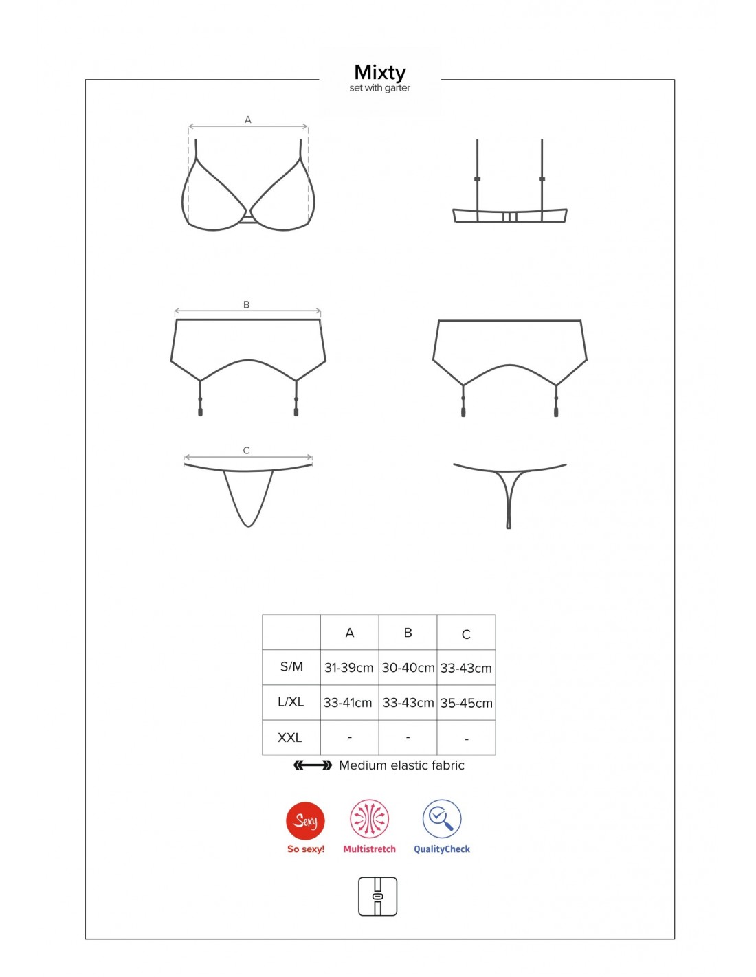 Przedstawiamy Ci komplet bielizny erotycznej Mixty, który sprawi, że poczujesz się seksownie i niezwykle kobieco. Ten trzyczęściowy zestaw jest idealny na każdą niegrzeczną okazję, niezależnie od tego, czy chcesz zaskoczyć swojego partnera czy po prostu poczuć się świetnie we własnej skórze.