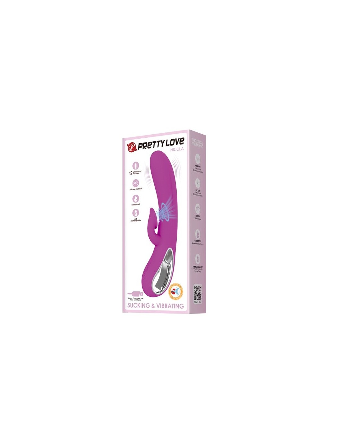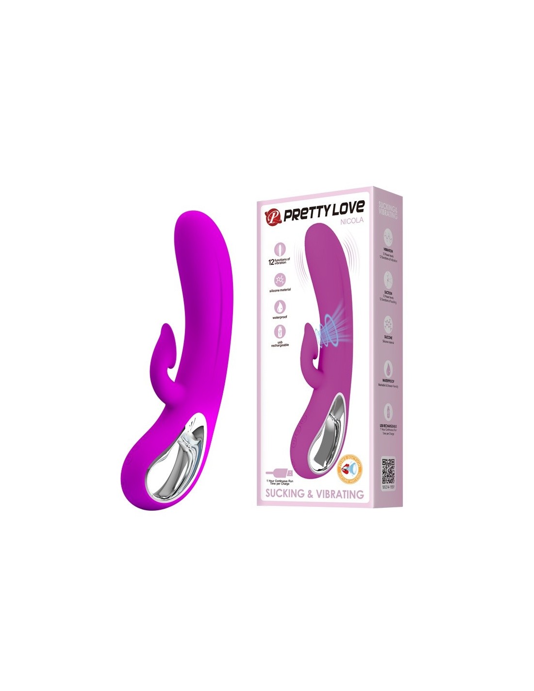 Pretty LoveStymulacja pochwy i łechtaczki w jednym - Wibrator króliczek Nicola 12 Function Sucking and Vibrating