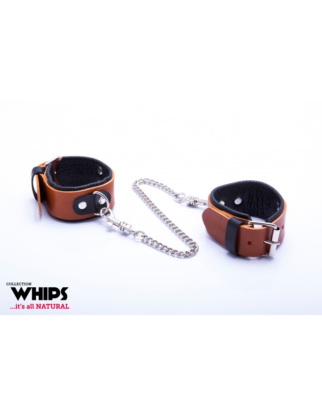 Kajdanki erotyczne WHIPS kajdanki damskie na ręce, koniakowe