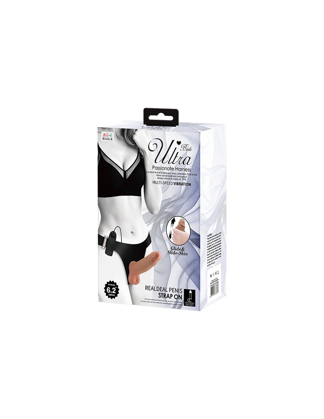 BaileWibrujący Strapon Ultra Passionate Harness Realdeal Penis 6.2'' Brown - Ożyw swoje fantazje!