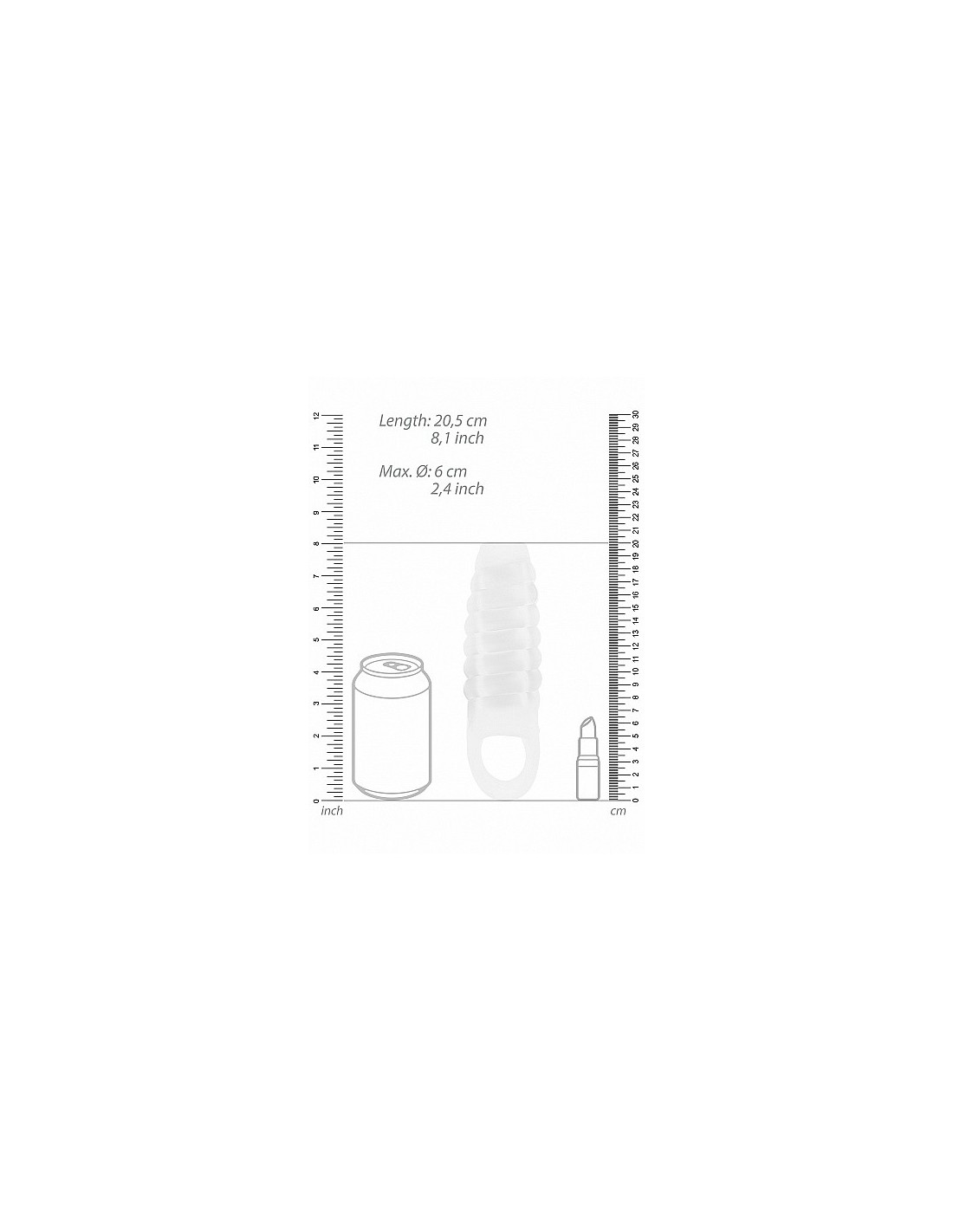 Wymiary i materiał tej nakładki zostały starannie dobrane, aby zapewnić maksymalne zadowolenie. Jej długość 205 mm i średnica 6 cm są idealne dla większości mężczyzn, a wewnętrzna średnica 4 cm gwarantuje pewne i bezpieczne dopasowanie.