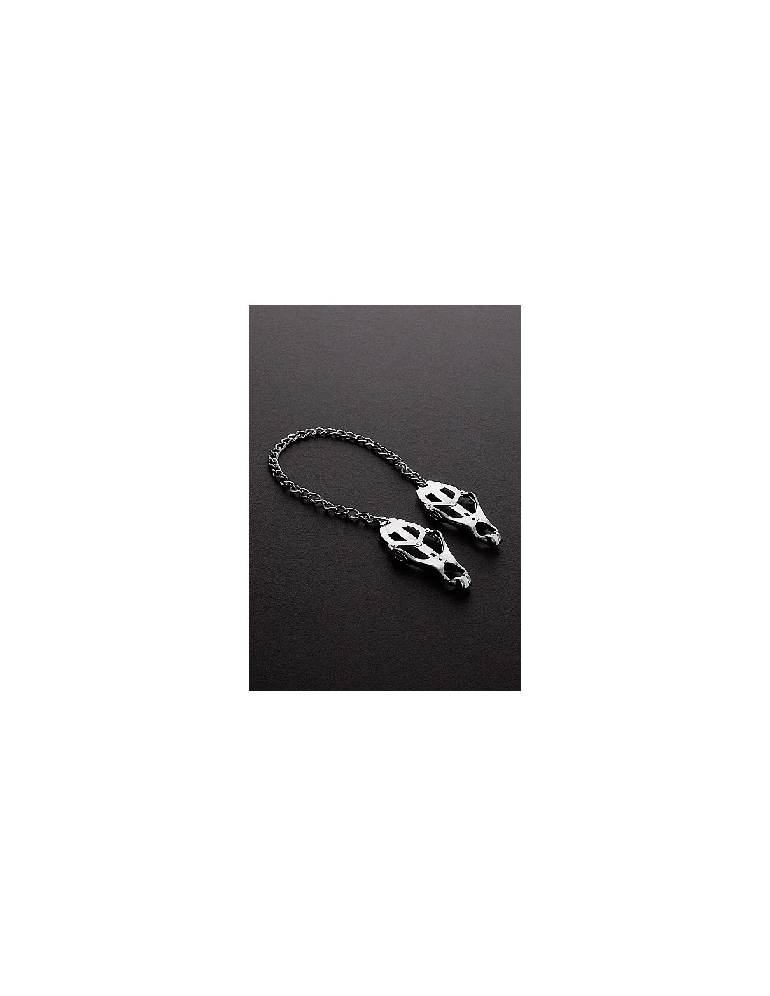 Nasze klipsy na sutki Clover Nipple Clamp with Chain to połączenie klasyki i nowoczesności. Wykonane ze stali nierdzewnej, zapewniają solidność i trwałość. Długi łańcuch o długości 32 cm łączy oba zaciski, umożliwiając eksperymentowanie z różnymi poziomami napięcia. Zastosowanie tych klipsów na obu sutkach jednocześnie pozwoli Ci poczuć delikatny nacisk, który dodaje pikanterii Twoim intymnym chwilom.