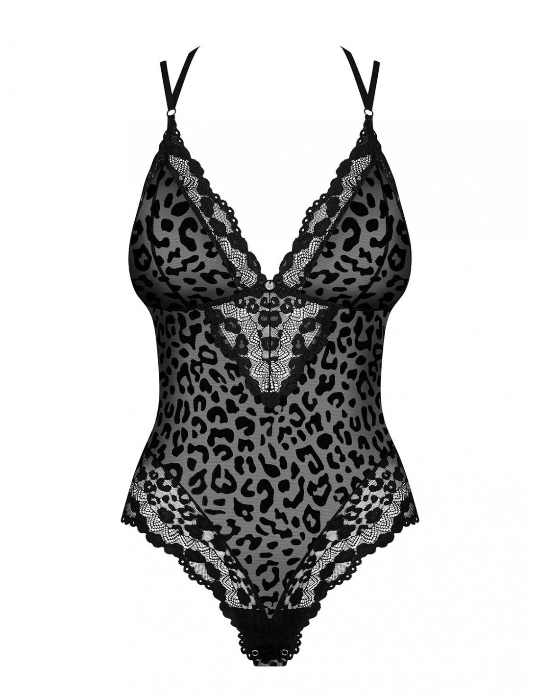 Czarne body Giully zostało stworzone z wyjątkowego, cętkowanego materiału, który dodaje mu niepowtarzalnego uroku. Głęboka czerń, seksownie odkryte plecy i lekko prześwitujący materiał sprawiają, że będziesz wyglądać zjawiskowo i uwodzicielsko. To niezwykłe body rozbudzi Twoją fantazję i przeniesie Cię do krainy rozkosznych marzeń, gdzie spełnią się wszystkie Twoje najskrytsze pragnienia.