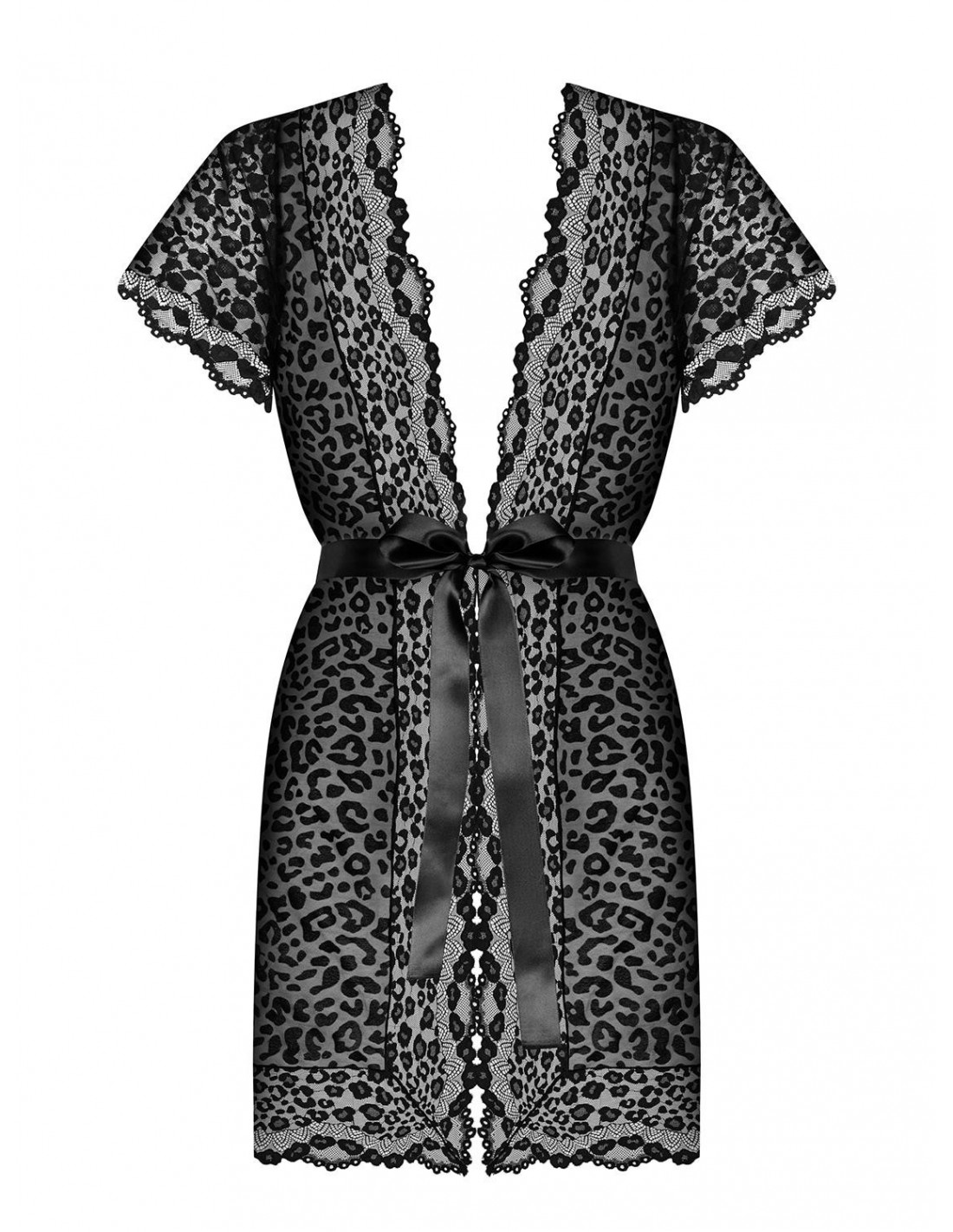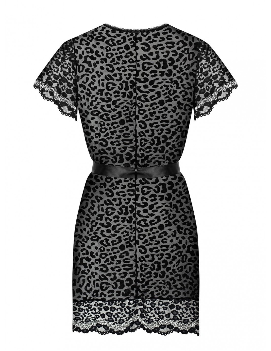 Giully to połączenie delikatnej koronki, prześwitującego materiału i kuszącego wzoru. Jego czarna koronka o pięknym wzorze oraz rozkoszne cętki dodają mu niepowtarzalnego uroku. Długość za pupę pięknie podkreśla nogi, a satynowe wiązanie w talii pozwala na idealne dopasowanie do Twojej sylwetki.