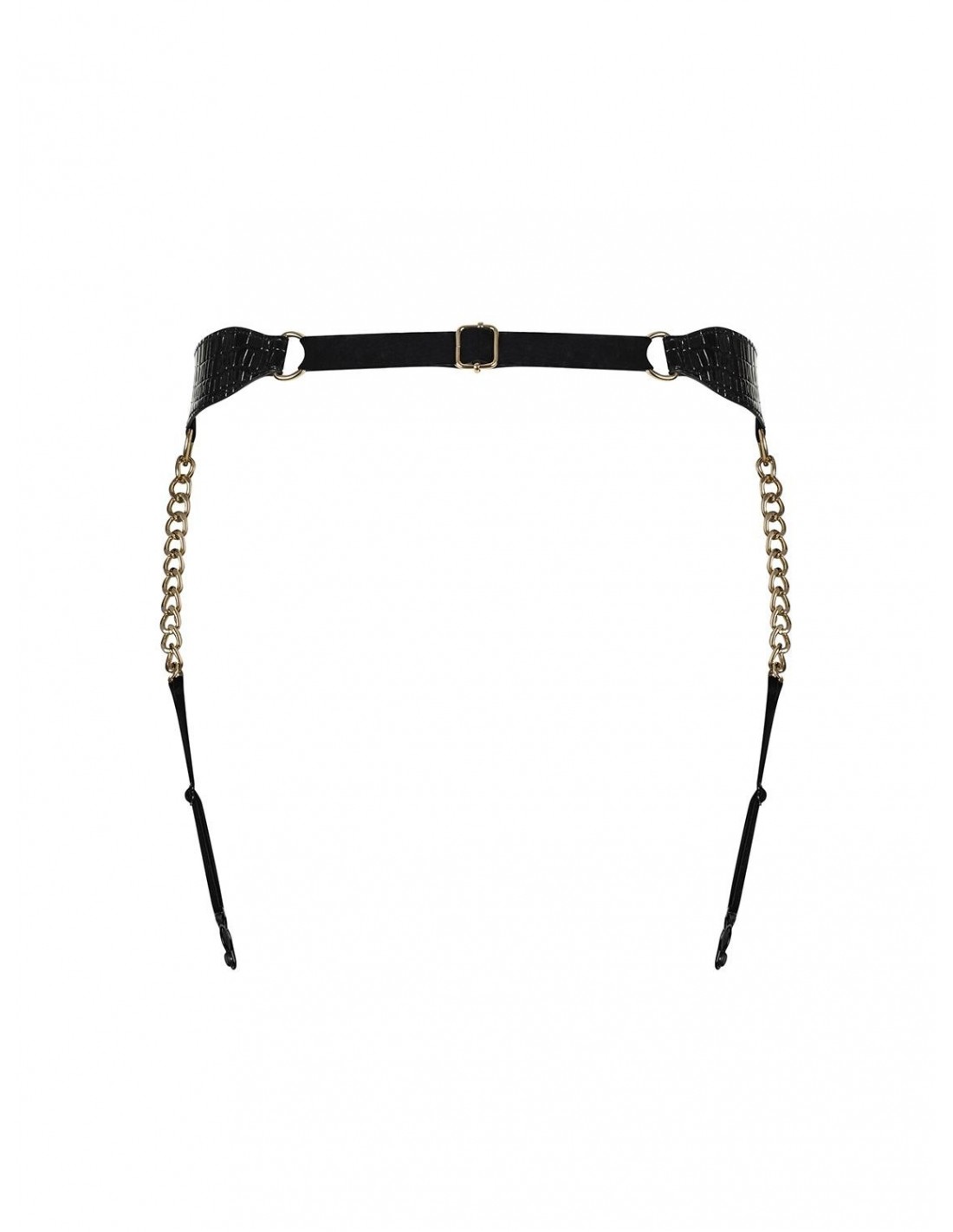 Złote detale, takie jak zapięcie na brzuchu w postaci złotej klamry czy łączenia w postaci złotych kółeczek, tworzą prawdziwy efekt wow. To niezwykle kuszące połączenie czerni i złota doda Ci pewności siebie i sprawi, że poczujesz się niezwykle seksownie.
