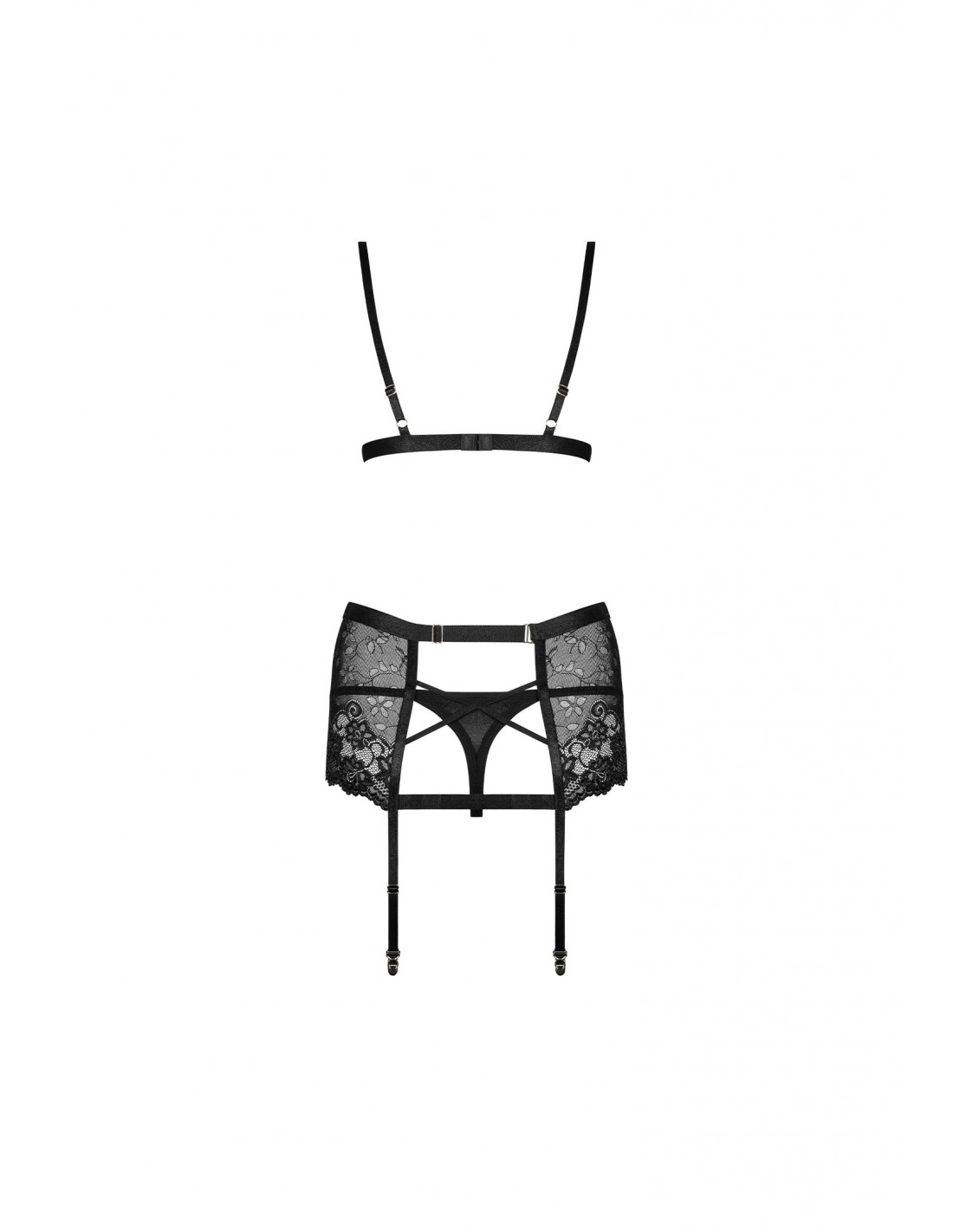 - Geometryczna kombinacja paseczków na plecach i regulowane paski do pończoch dodają wyjątkowego uroku i zmysłowości.