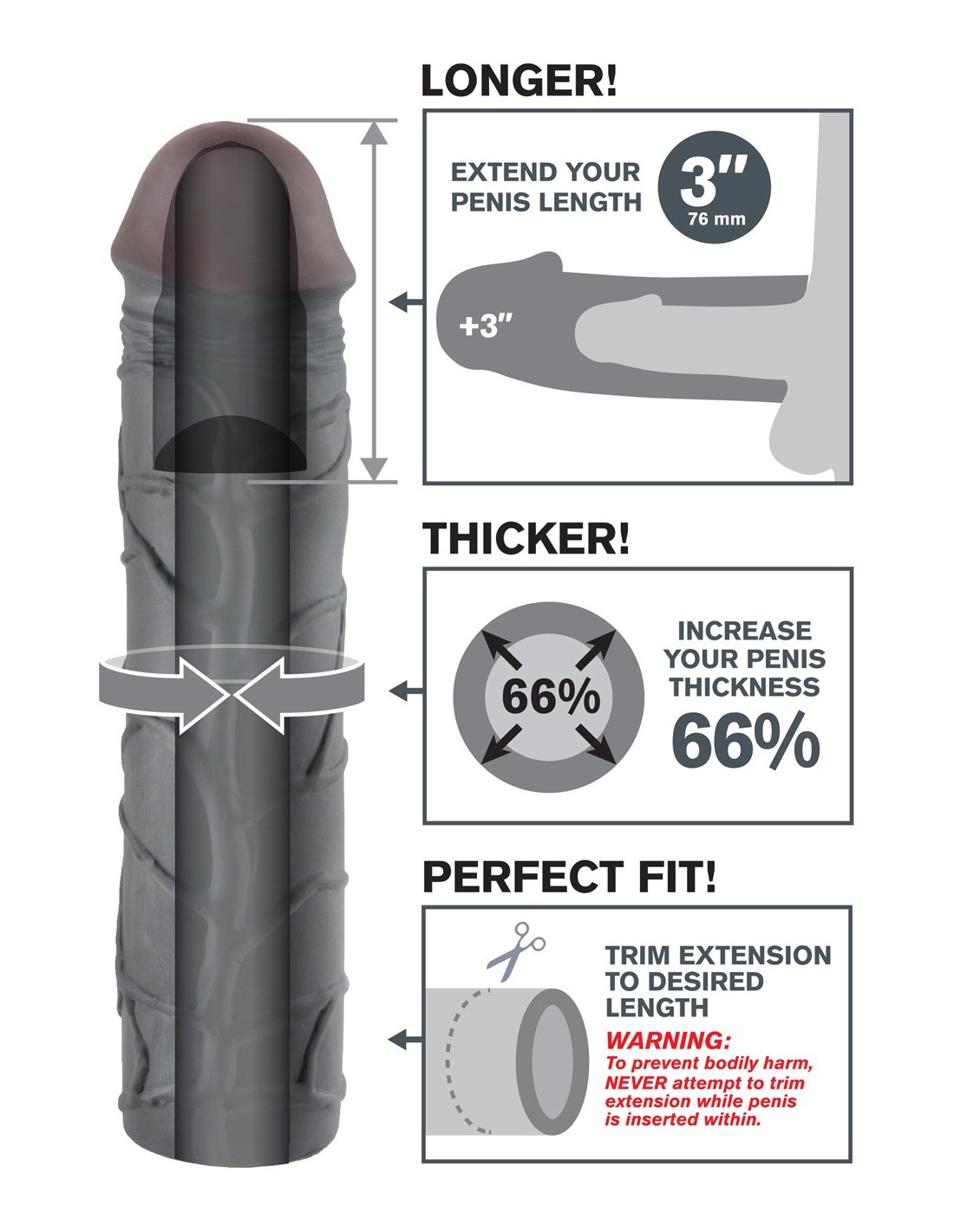 Zapomnij o drogich procedurach medycznych i tabletkach. Stymulator-FX MEGA 3" EXTENSION BLACK to bezpieczna, przystępna cenowo i niechirurgiczna alternatywa, która zapewni Ci największą, najgrubszą i najbardziej satysfakcjonującą wędkę, jaką kiedykolwiek sobie wyobrażałeś! Dzięki temu innowacyjnemu rozwiązaniu będziesz mógł czerpać pełnię przyjemności i zadowolić swojego partnera.