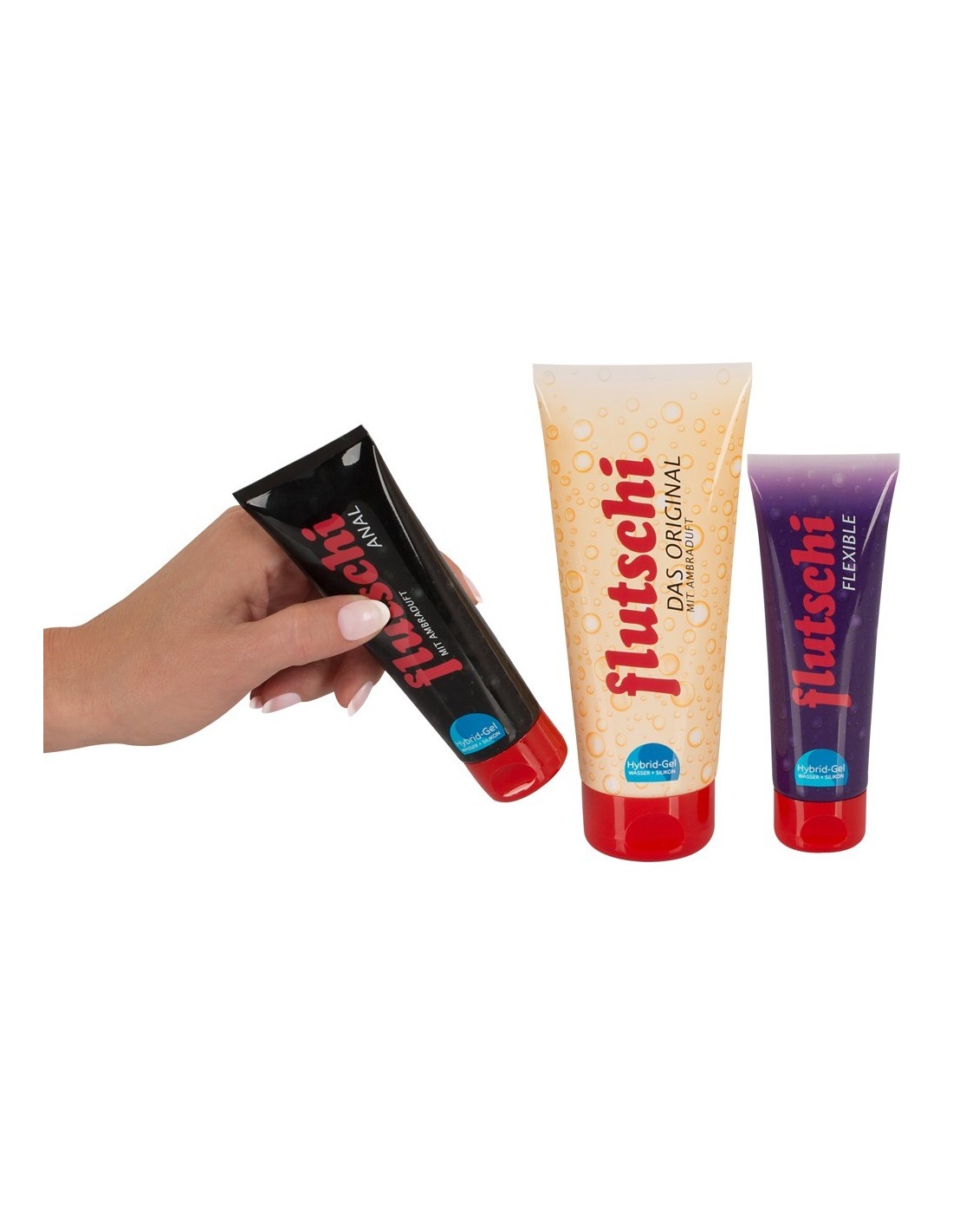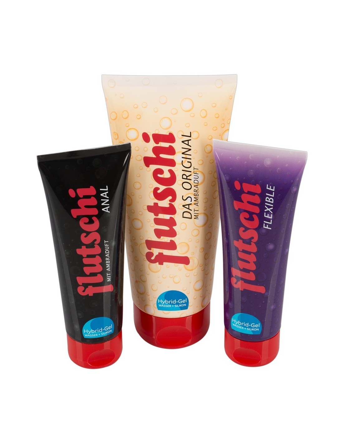 Flutschi 3-piece Set to nie tylko zwykły lubrykant. To rewolucyjny produkt, który otwiera przed Tobą zupełnie nowy wymiar rozkoszy. Dzięki unikalnej formule opracowanej przez Lubry Gmbh, ten zestaw gwarantuje maksymalne nawilżenie i wyjątkowe doznania podczas każdej intymnej chwili.