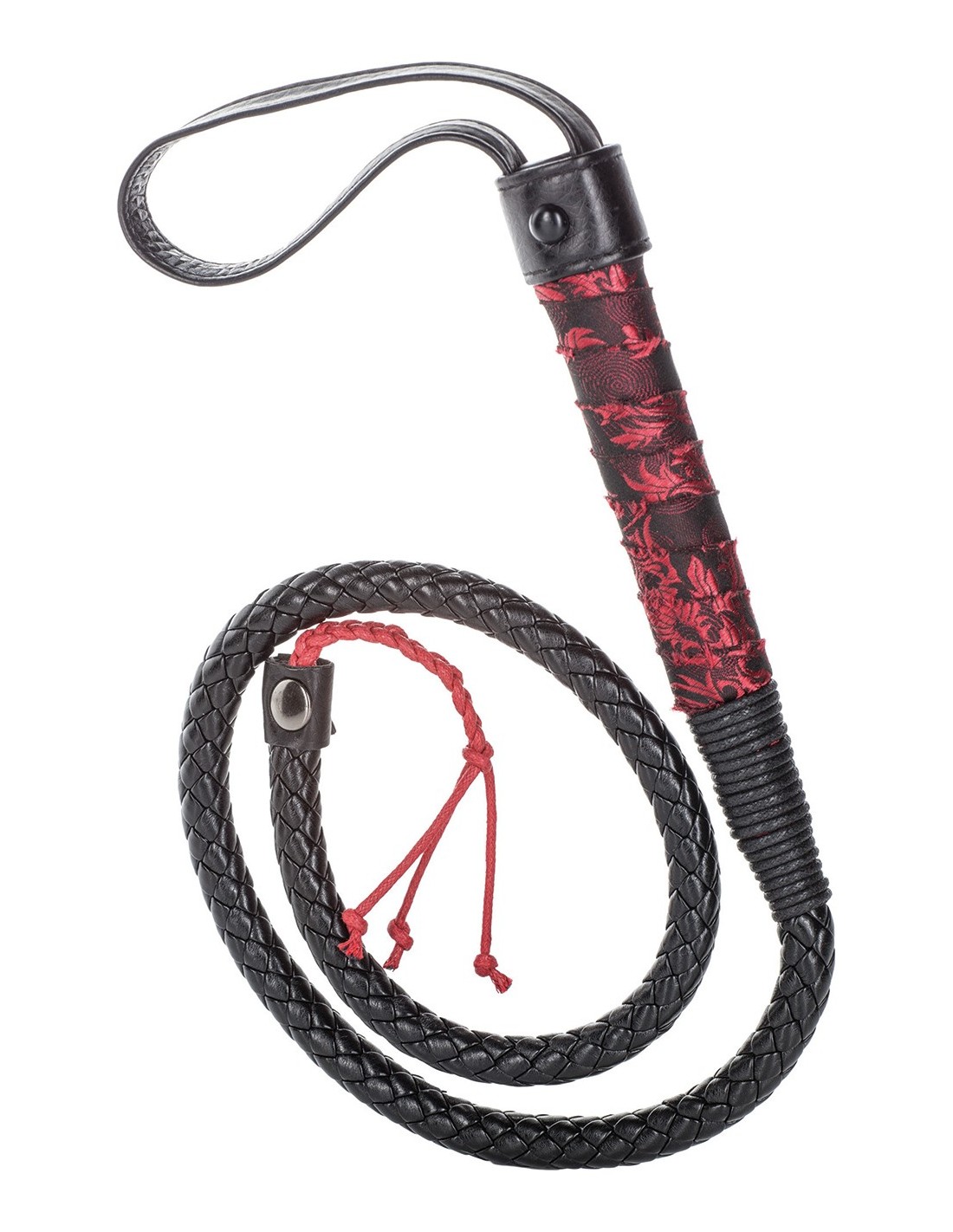 Nasz pejcz-SCANDAL BULL WHIP to idealny wybór dla miłośników BDSM, którzy poszukują wysokiej jakości i estetycznego akcesorium. Wykonany z najwyższej jakości materiałów, ten pejcz zapewnia nie tylko wyjątkowy wygląd, ale także niezwykłą wytrzymałość. Jego dekoracyjna rączka wykończona jest bogato zdobioną czarno-czerwoną tkaniną o subtelnym połysku, co nadaje mu eleganckiego i intrygującego charakteru.