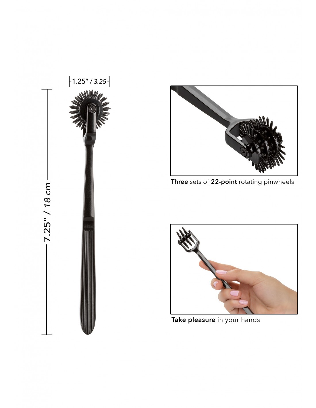 Scandal Trio Pleasure Wheel to nie tylko narzędzie do eksploracji BDSM, ale także doskonały sposób na podkręcenie atmosfery w sypialni. Jego elegancki design i ergonomiczny kształt sprawiają, że jest nie tylko funkcjonalny, ale także estetyczny. Zaskocz swojego partnera lub partnerkę i spraw, by wasze wspólne chwile były jeszcze bardziej ekscytujące.