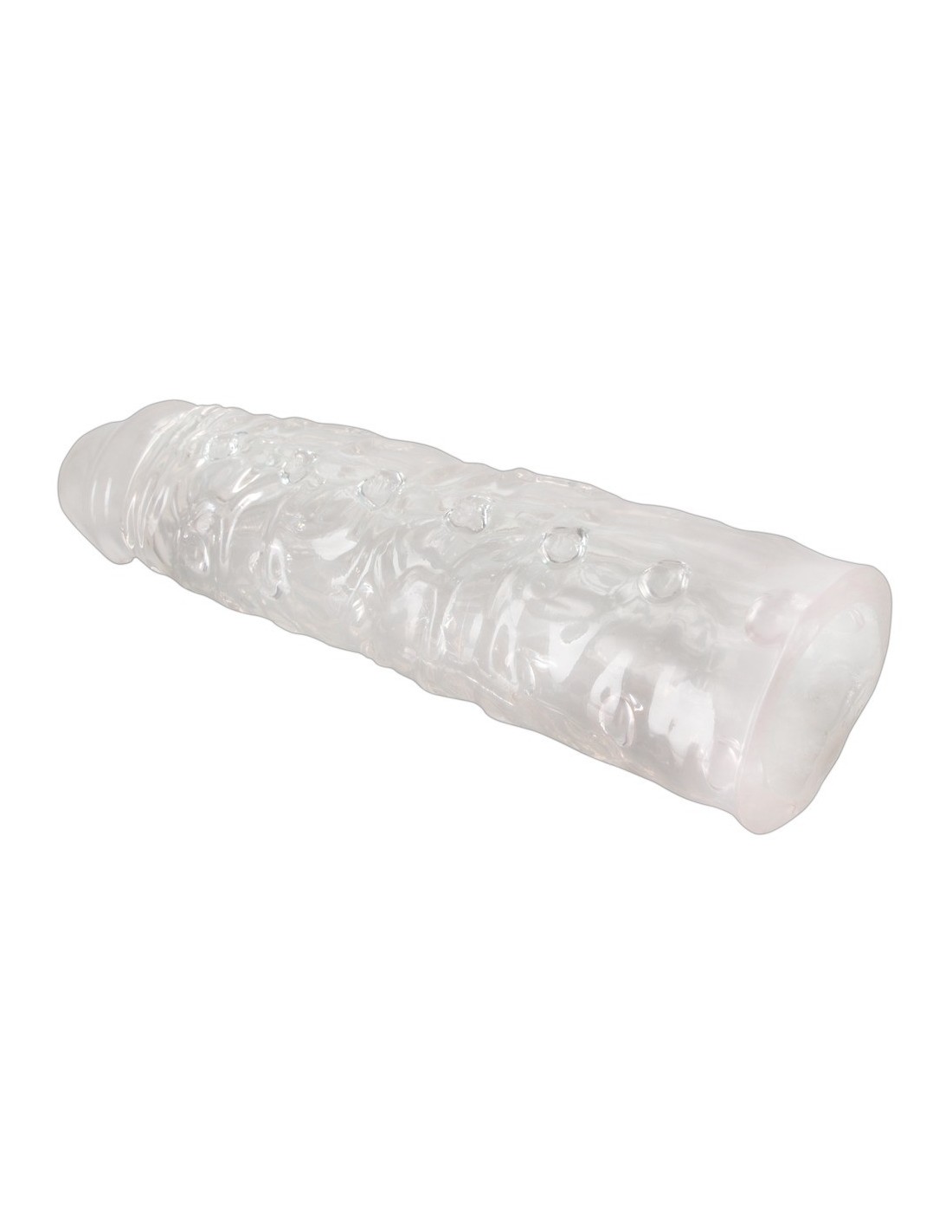 Ten przejrzysty penis rękaw został stworzony z myślą o Twoim pełnym zadowoleniu. Jego długość zewnętrzna wynosząca około 22 cm i regulowana długość wewnętrzna umożliwiają idealne dopasowanie do Twojego ciała. Solidne żołędzie oraz nubsy i żyłki na powierzchni rękawa zapewniają intensywne stymulacje, które sprawią, że Twoje doznania staną się jeszcze bardziej ekscytujące.