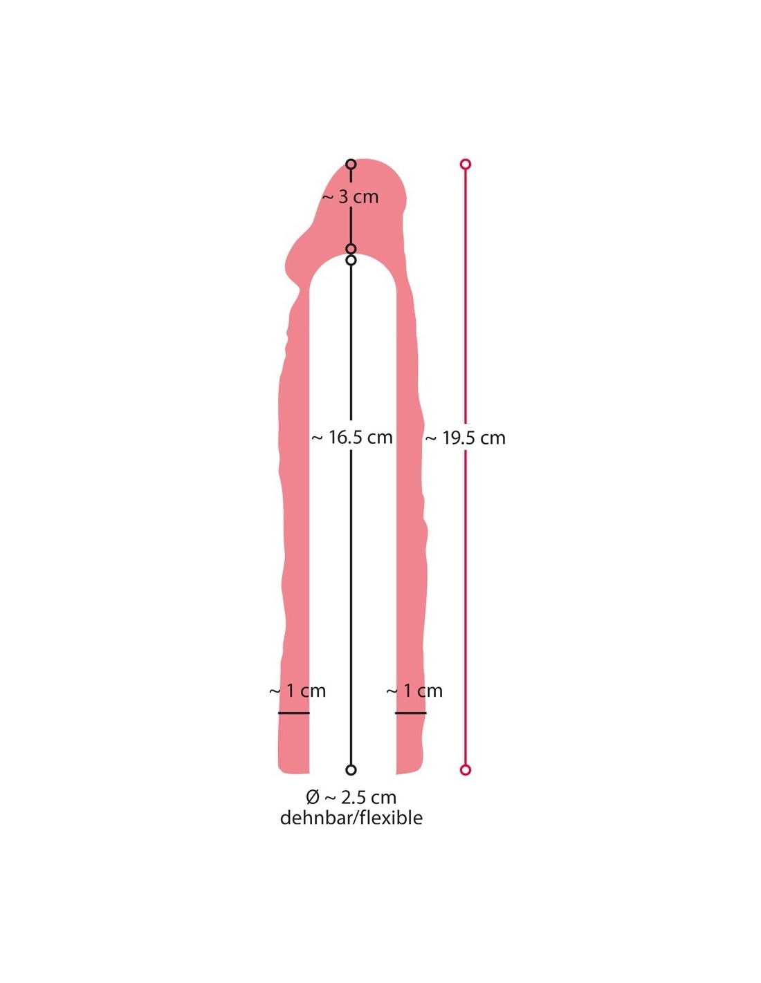 Nature Skin Extension Sleeve+3 ma całkowitą długość 19,5 cm, co pozwala na głębokie i intensywne penetracje. Głębokość wkładania wynosi 16,5 cm, a wewnętrzny średnica to 2,5 cm. Wykonany z trwałego materiału TPR, ten rękaw jest nie tylko wygodny w noszeniu, ale także łatwy do czyszczenia i pielęgnacji.
