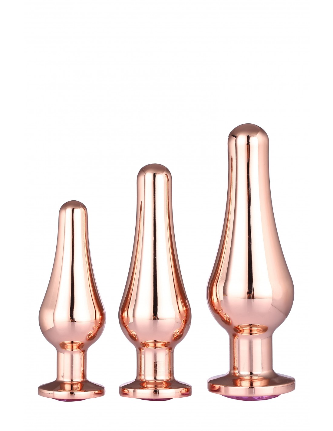 Zestaw Gleaming Love Pleasure Set Rose Gold to idealny wybór dla wszystkich miłośników ekskluzywnych doznań. Dzięki tym stożkowatym i lśniącym zatyczkom analnym z klejnotem w podstawie, każda chwila intymności staje się niezapomniana.