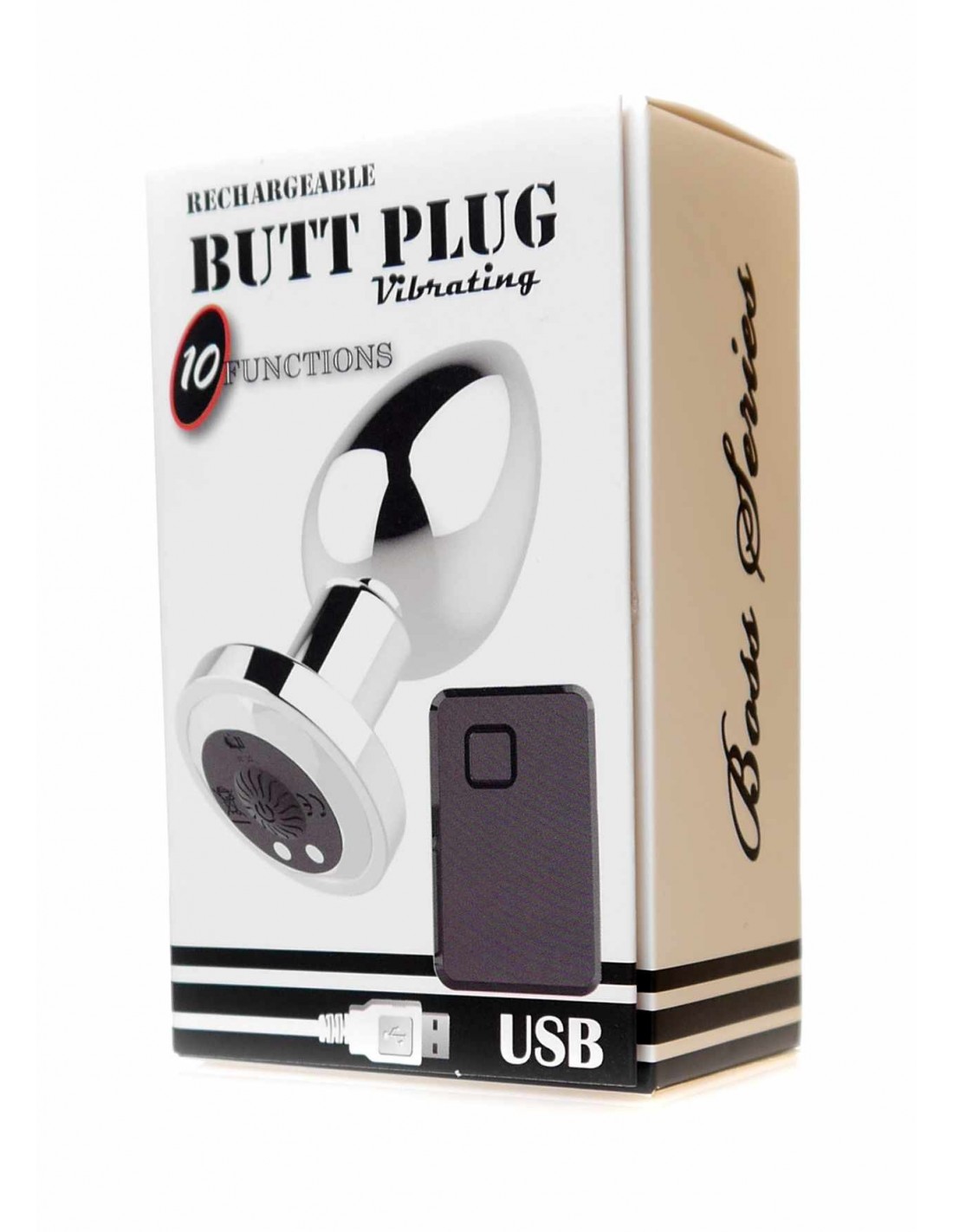 Stymulator-Rechargeable Butt Plug Vibrator USB 10 Functions - Silver