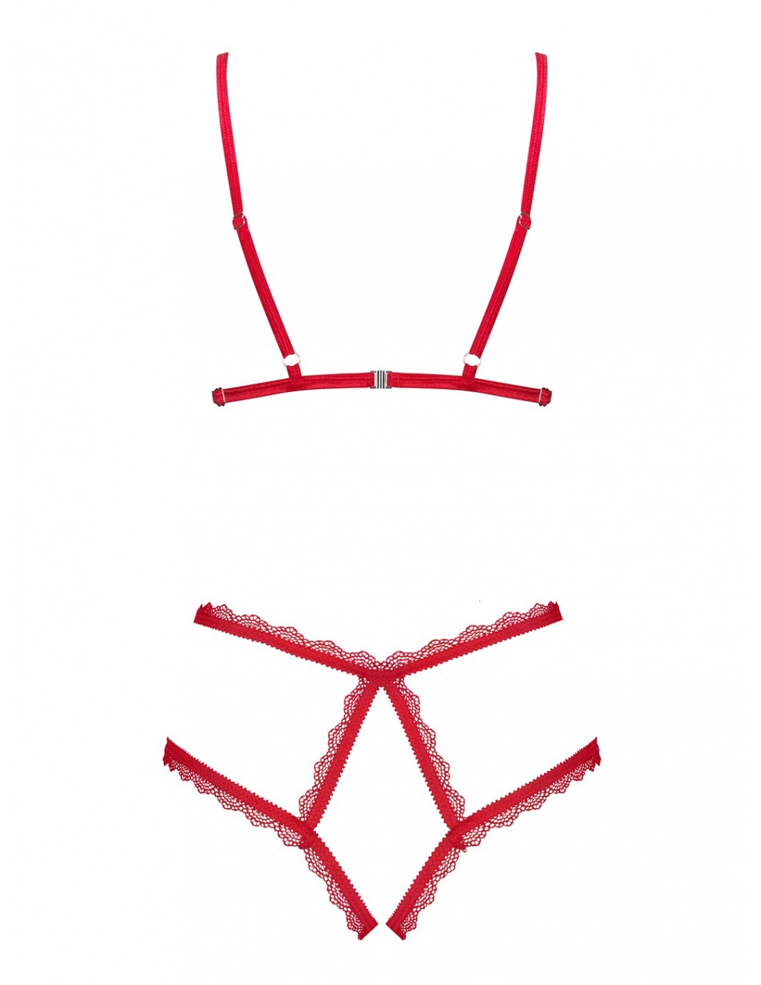 Elastyczne, koronkowe paseczki tworzą geometryczną kombinację, która idealnie dopasowuje się do Twoich kształtów, podkreślając krągłości Twojego ciała. Prześwitująca siateczka dodaje figlarności i zmysłowości, tworząc niezwykle kuszący efekt.